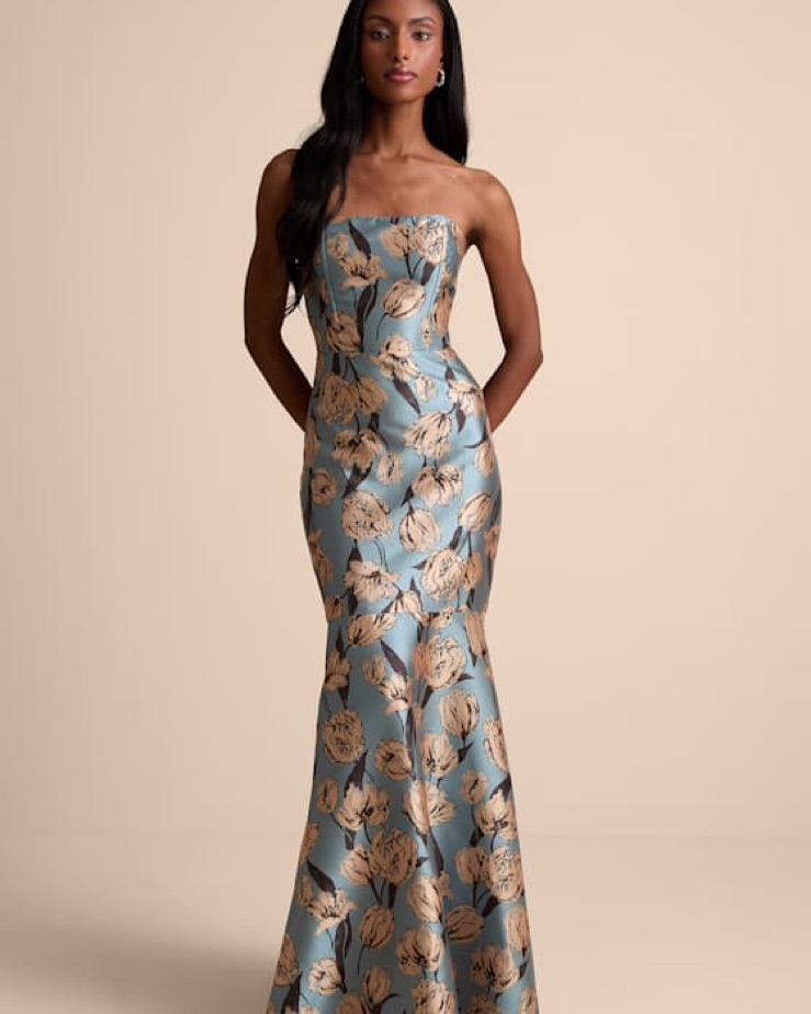 Blue Floral Formal Gown