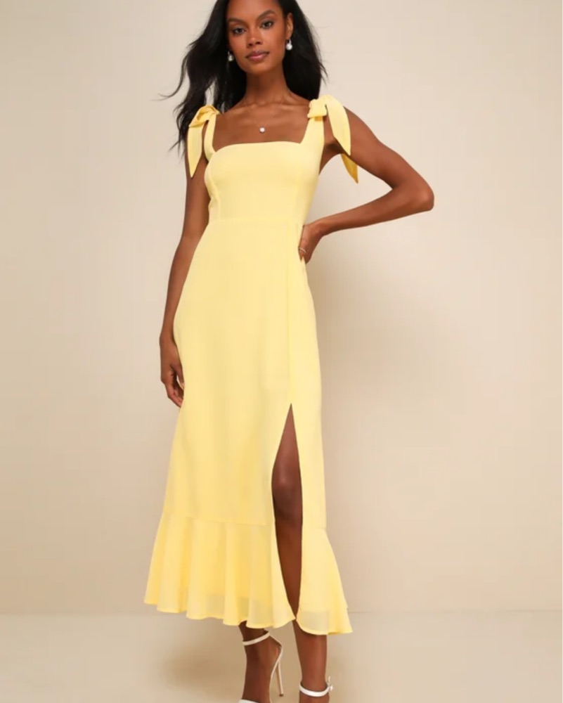 Yellow Tie-Strap Tiered Midi Dress