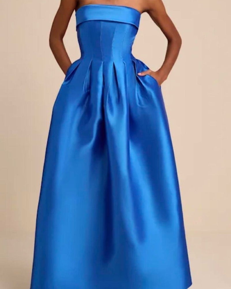 Royal Blue Strapless A-Line Maxi Dress