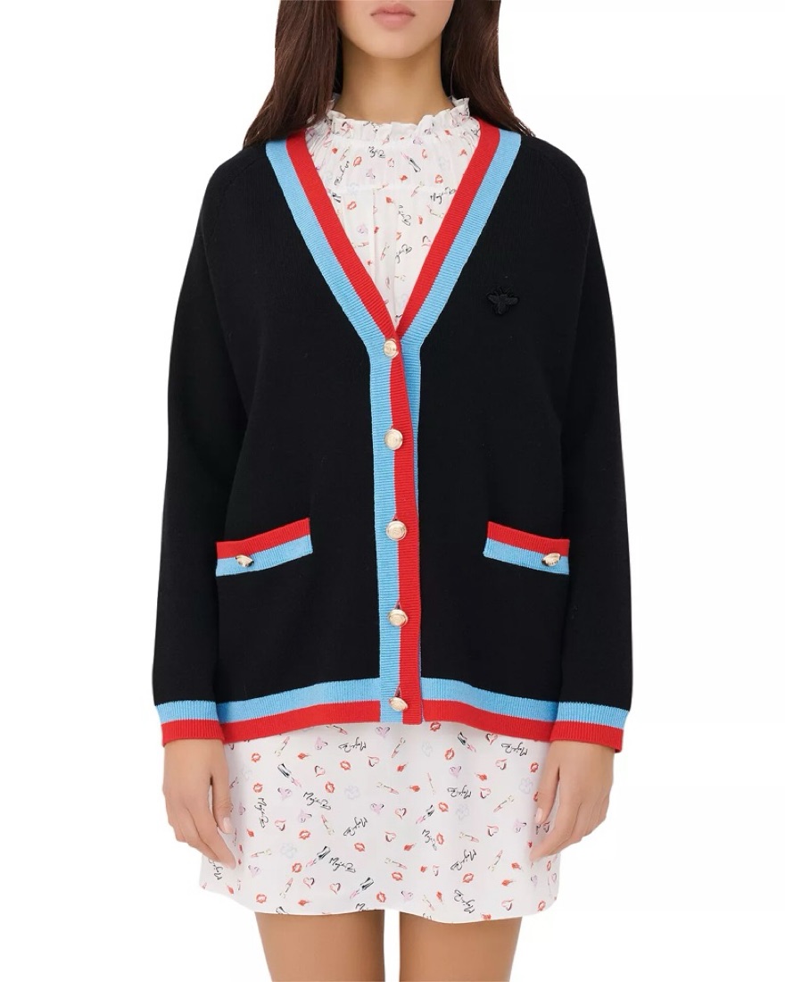 Maje Two Tone Striped Sweater Cardigan