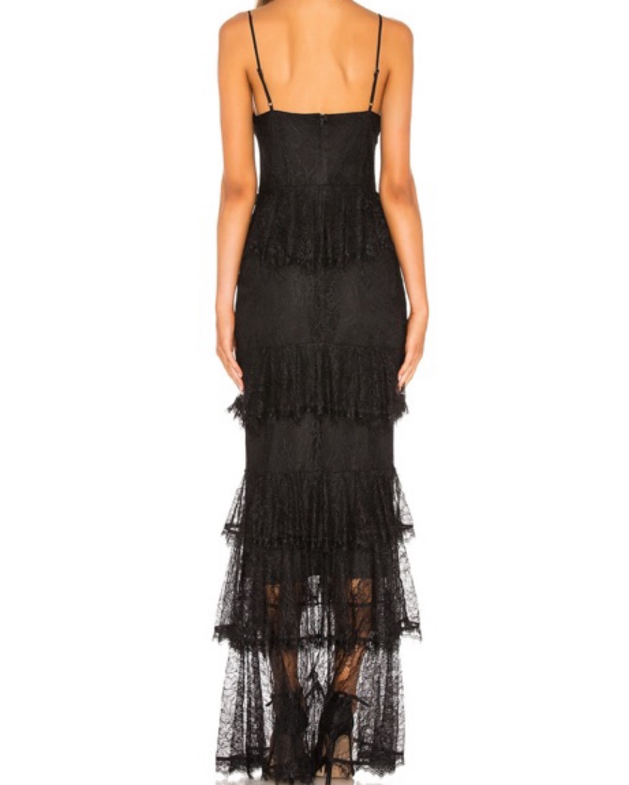 Majorelle Black Lace Tier Dress