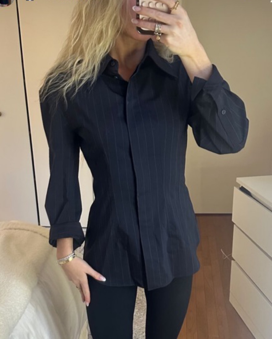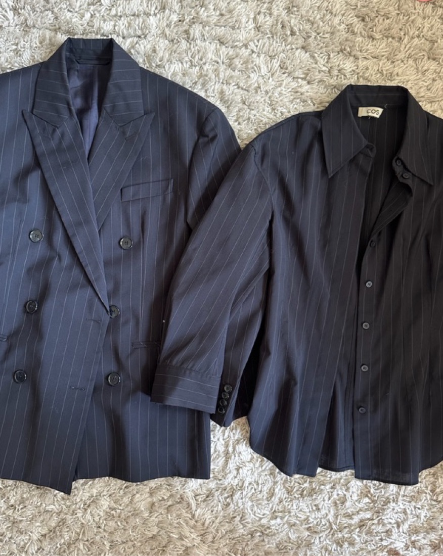 Oversized Pin Strip Button Down + Blazer