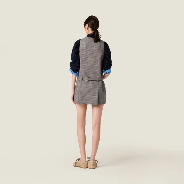Miu Miu Sleeveless Plaid Mini Dress with Zipper Pocket