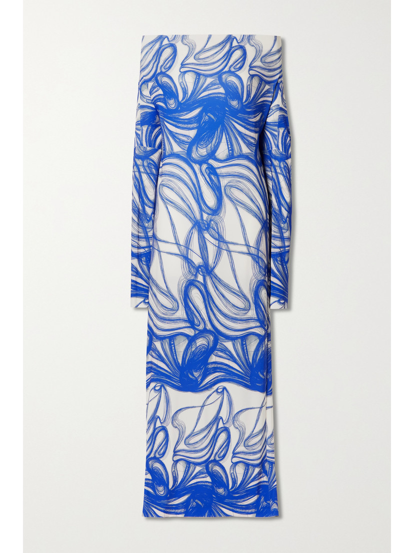 Off-The-Shoulder Printed Stretch-Jersey Maxi Dress