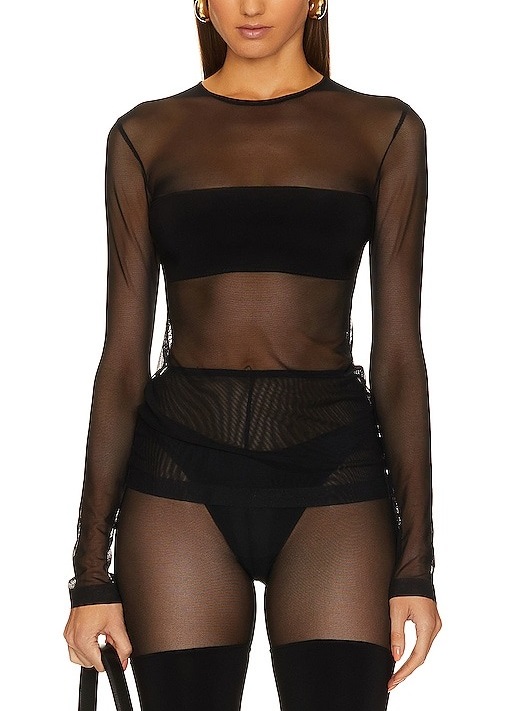 Norma Kamali X Revolve Crewneck Banded Midriff Top In Black Mesh