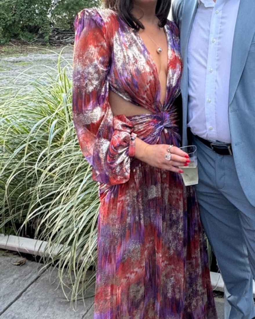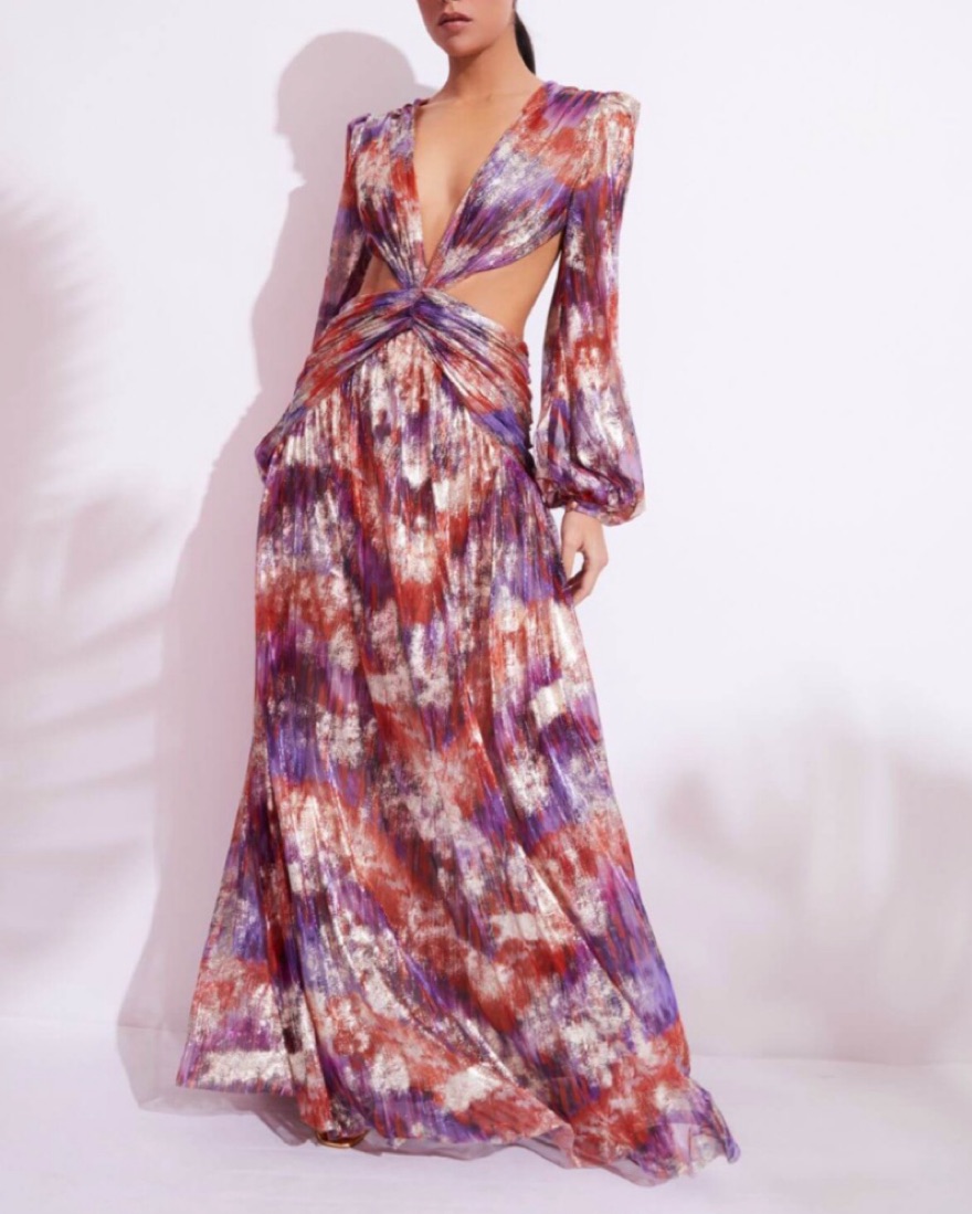 PatBo Lurex Printed Wedding Guest Gowne