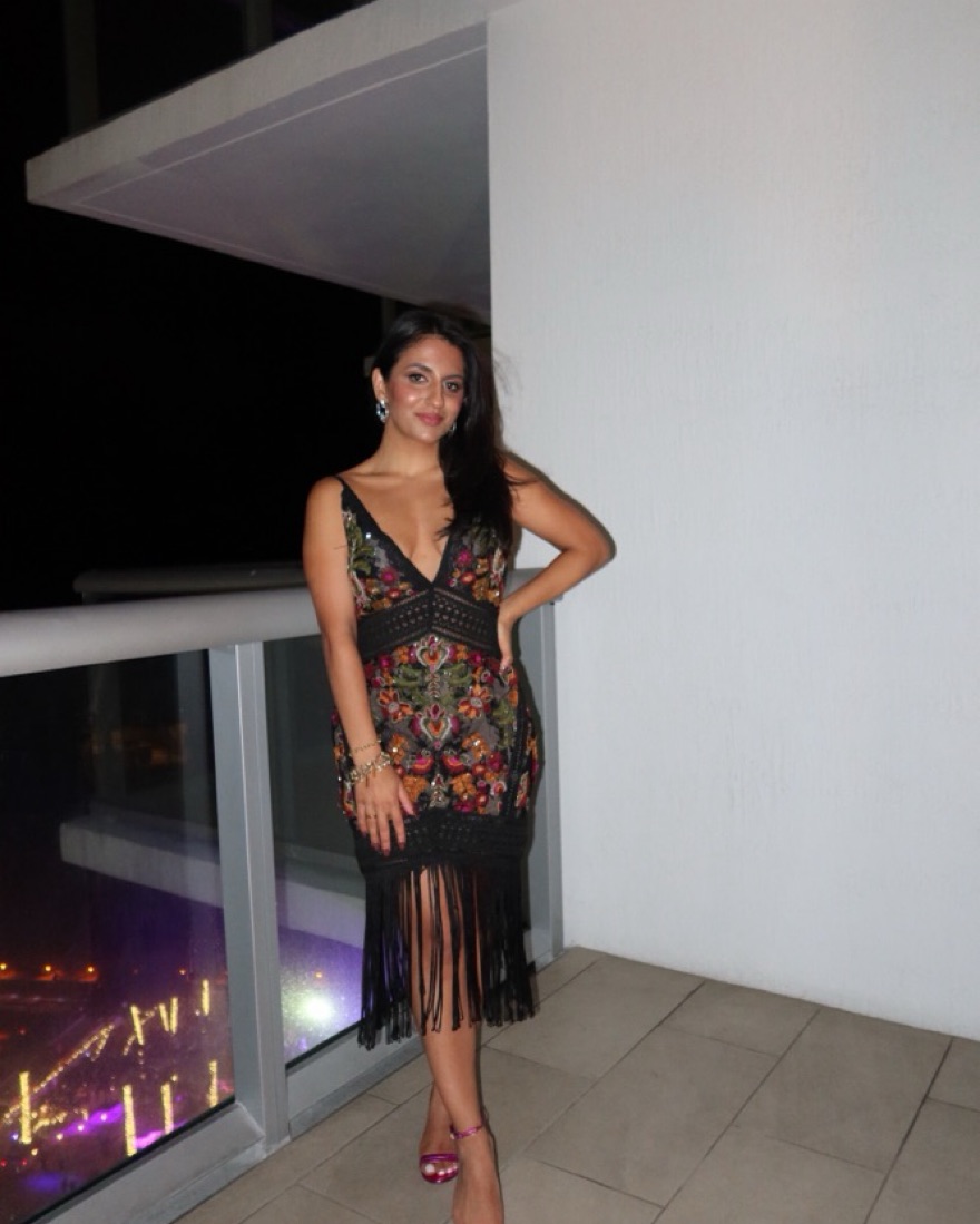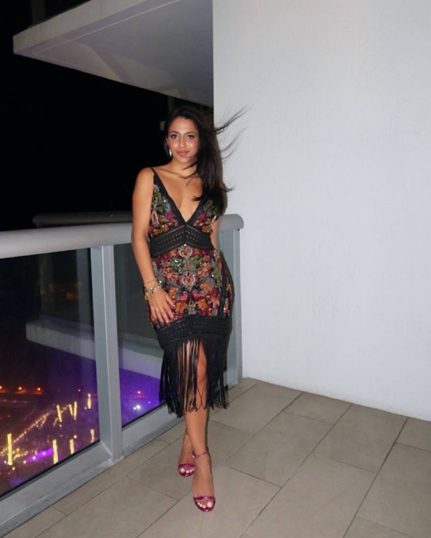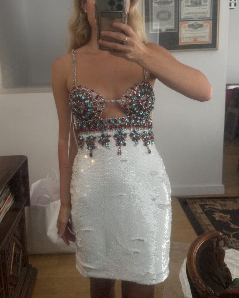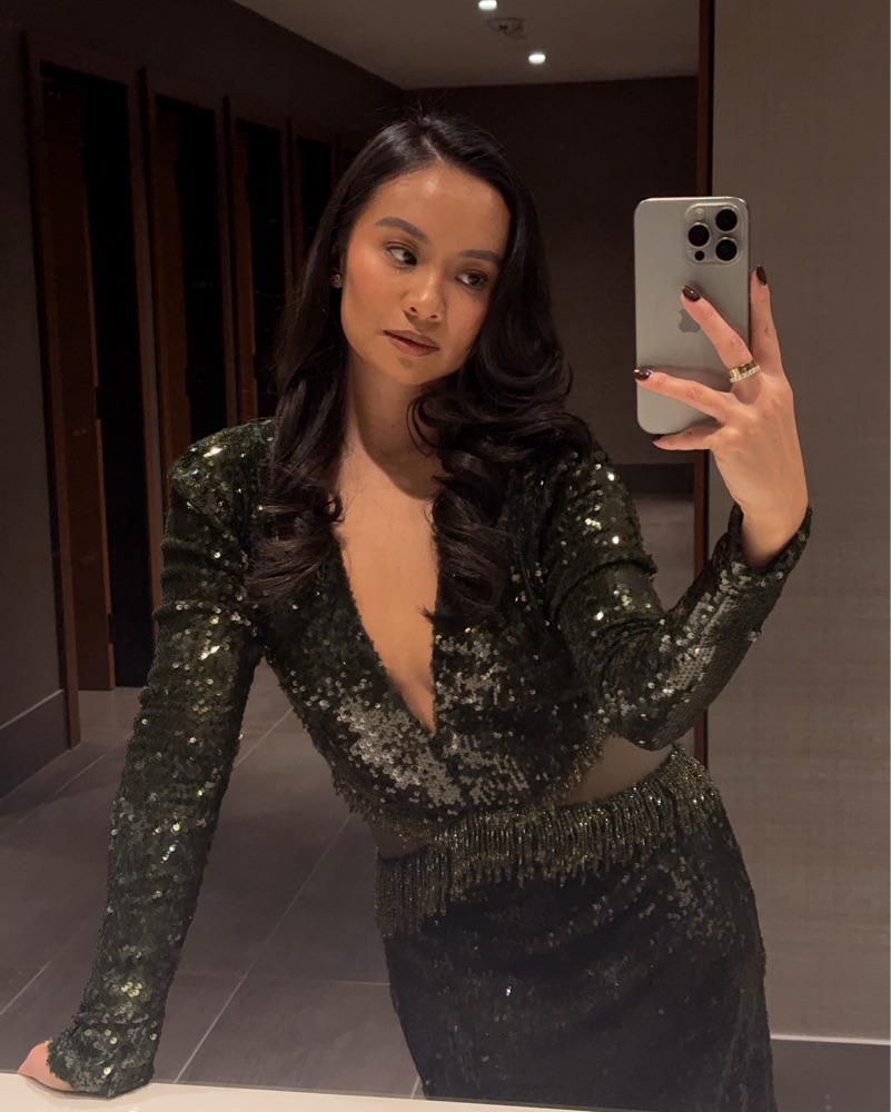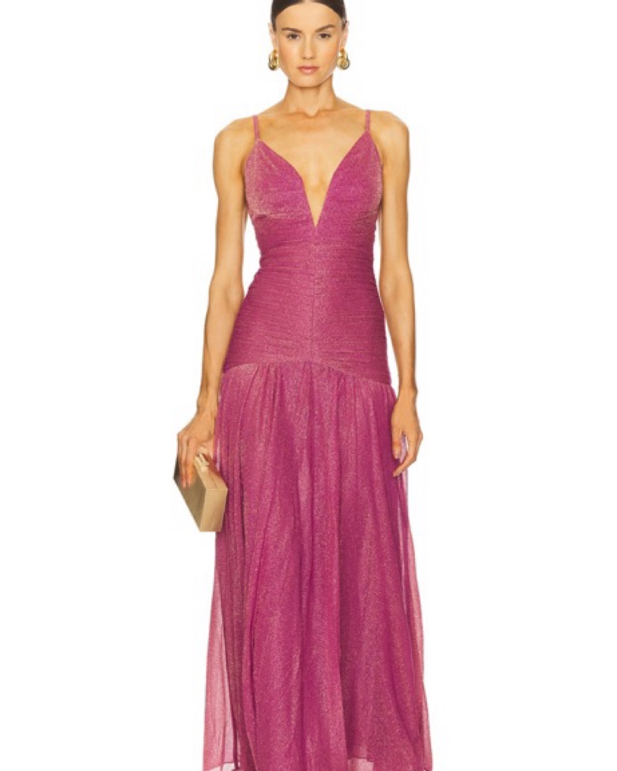 PatBo Gold Dust Lurex Plunge Mini Dress