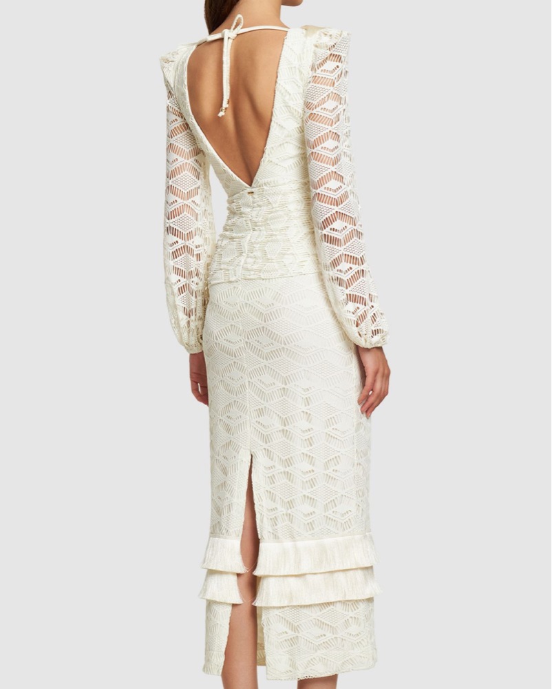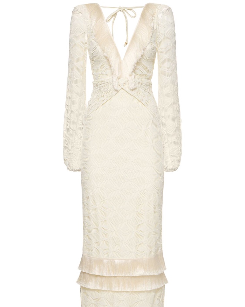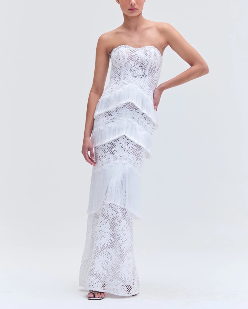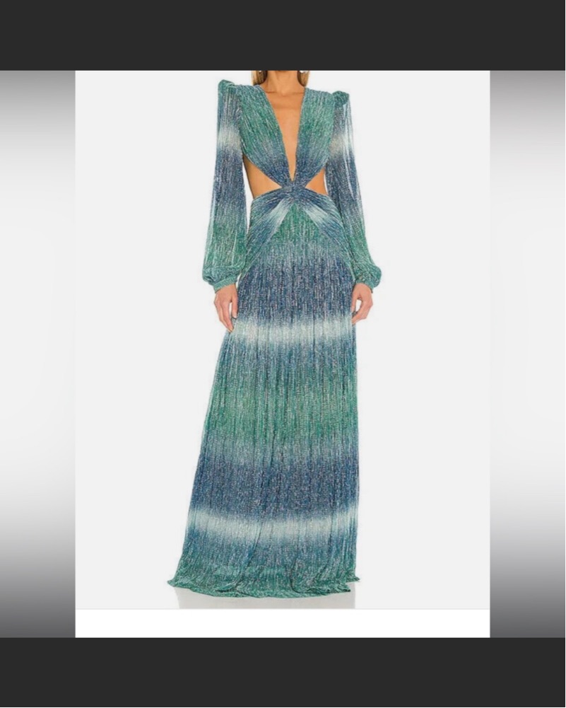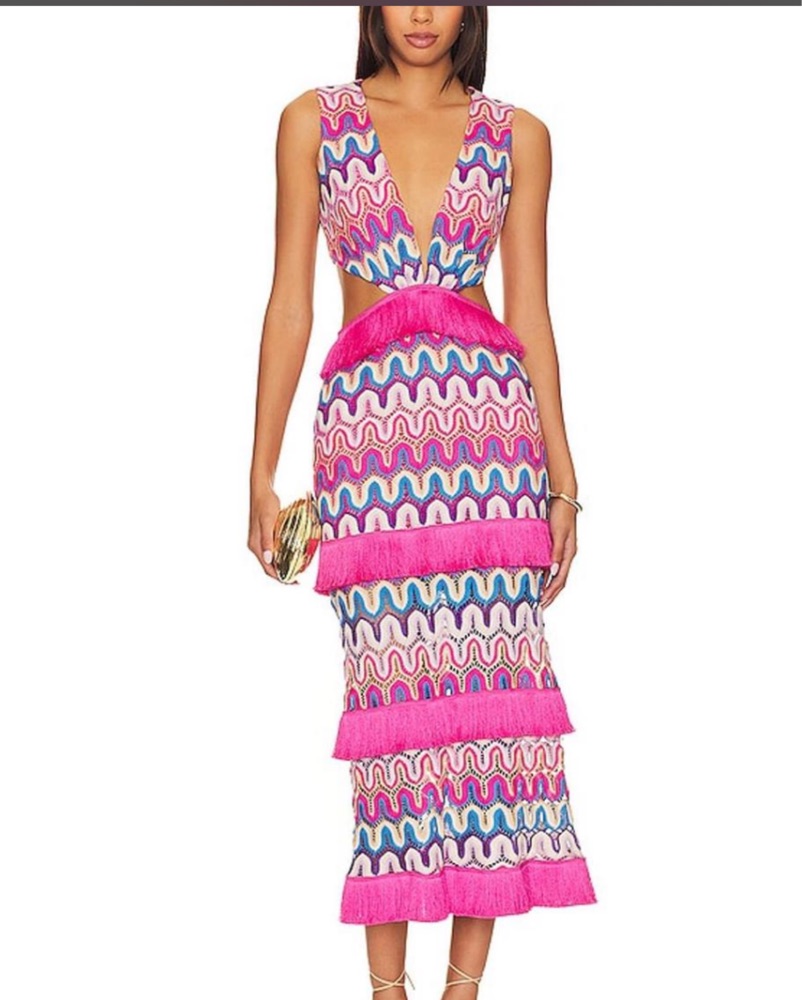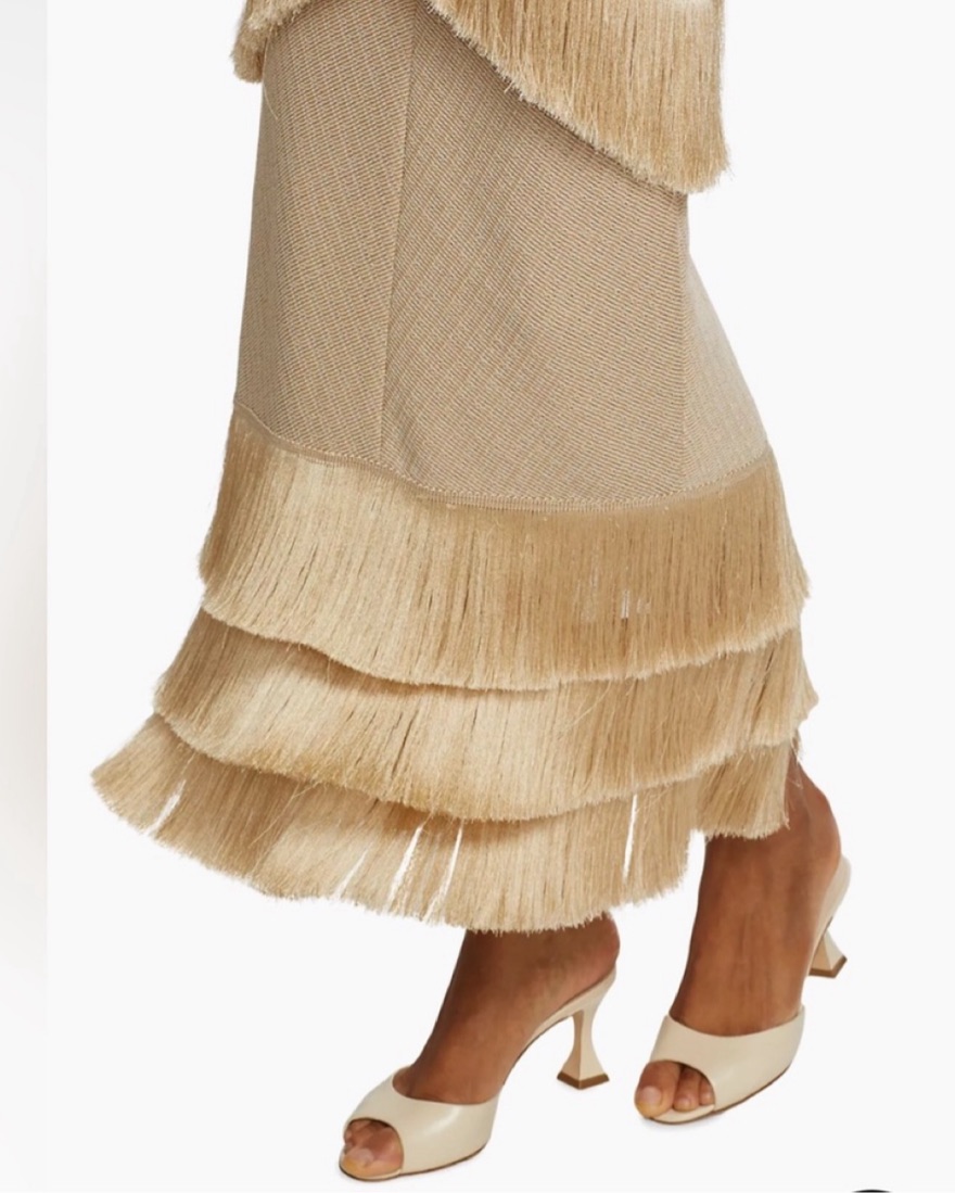 PatBO Metallic Cut-Out Fringe Maxi Dress