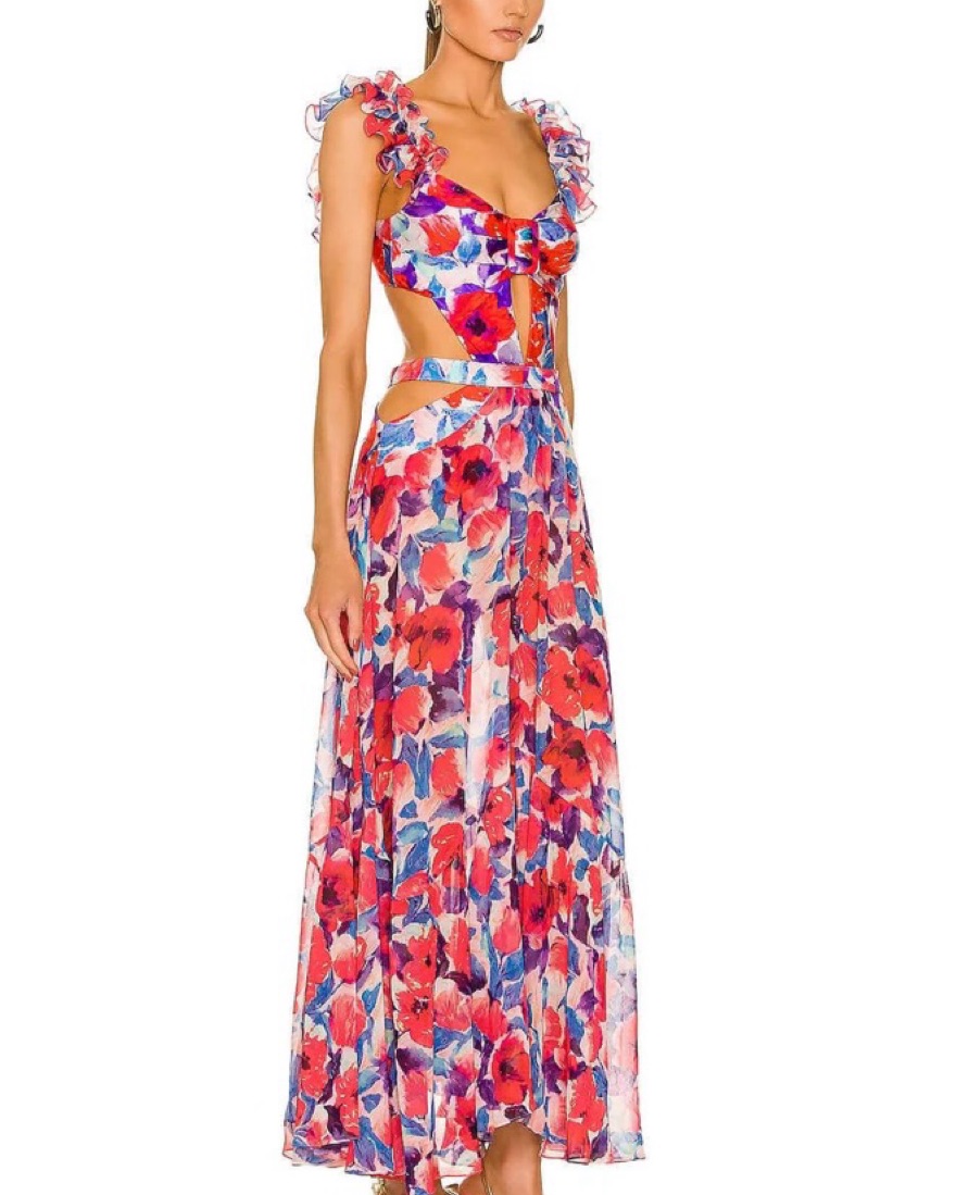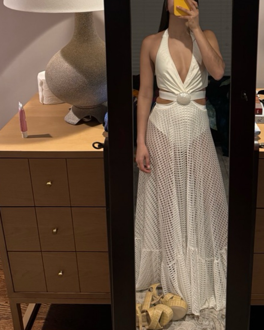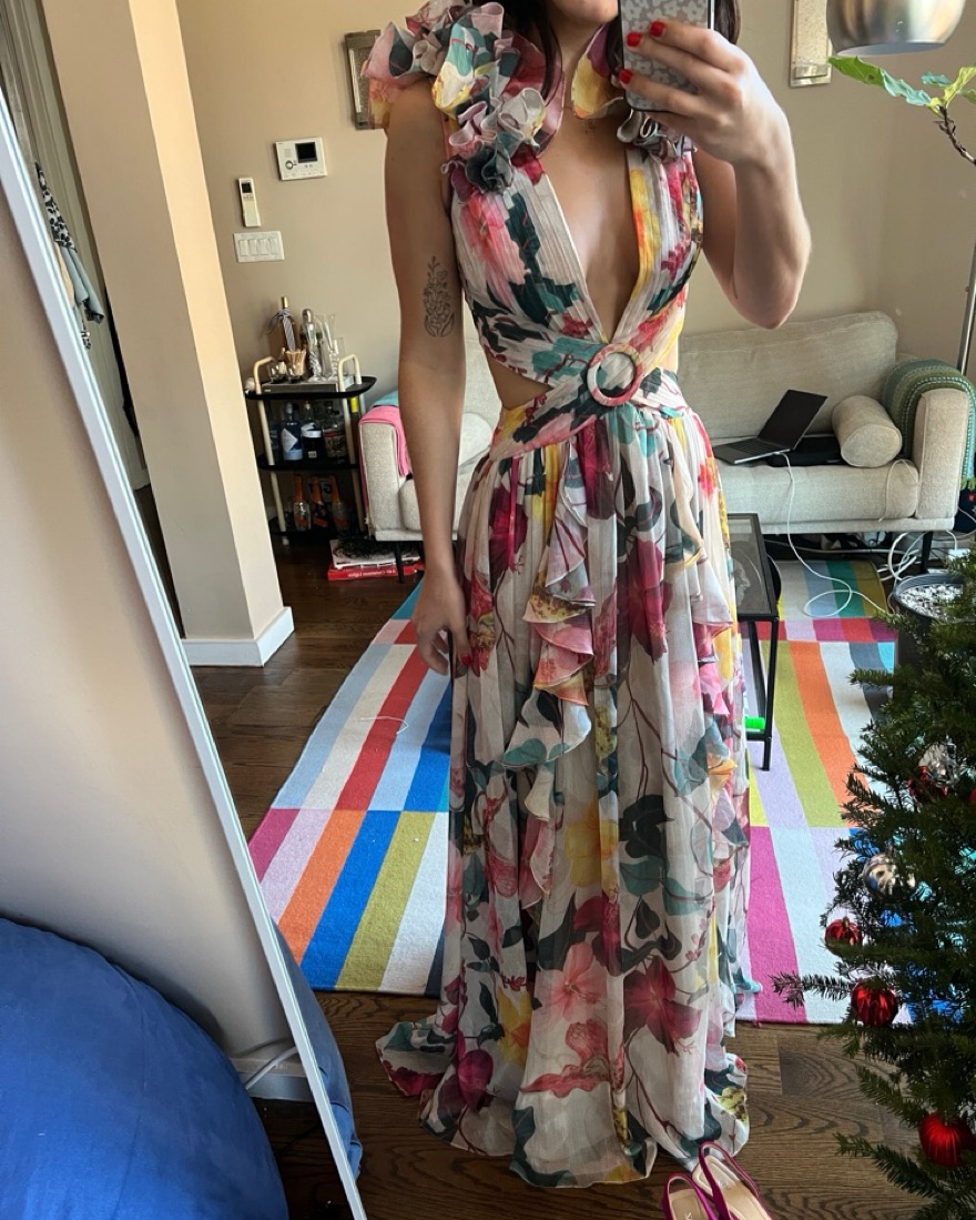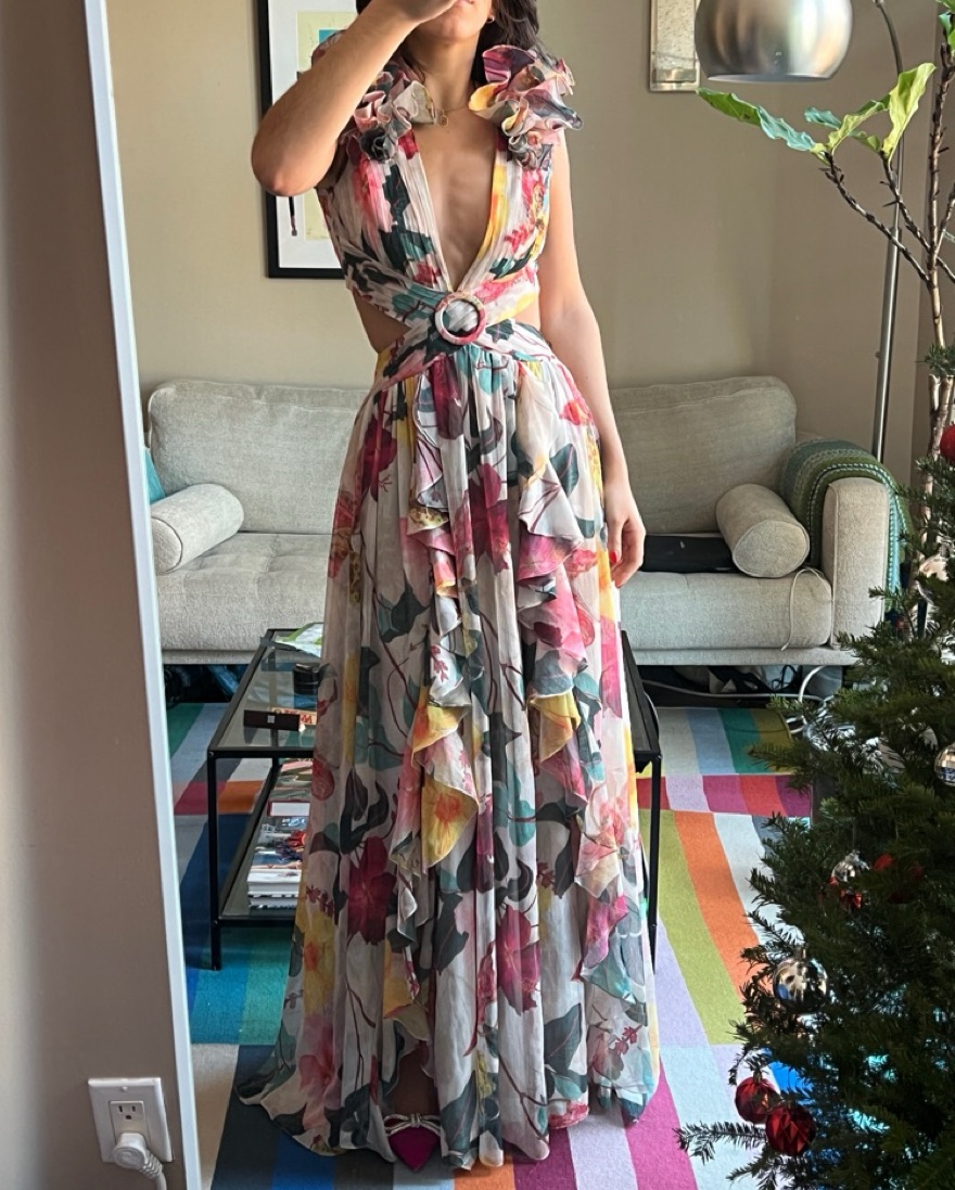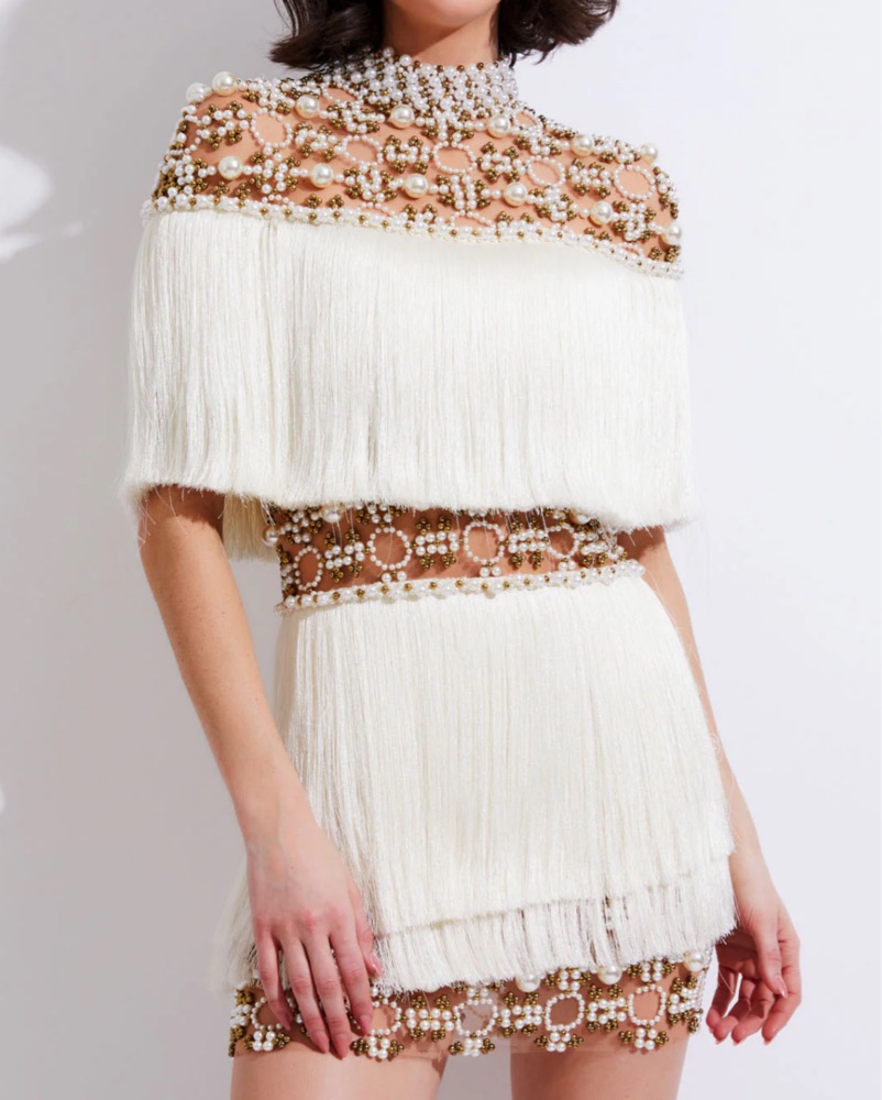 PatBO Metallic Cut-Out Fringe Maxi Dress