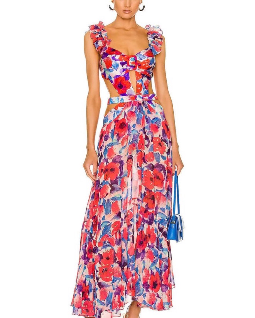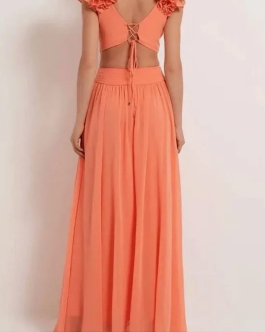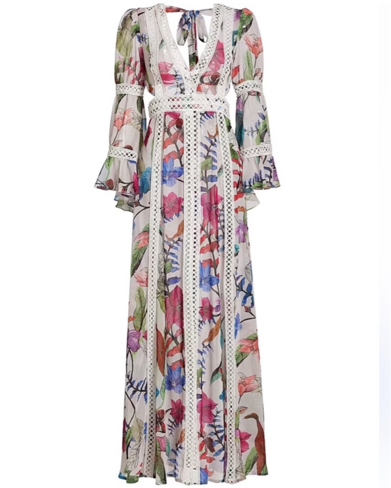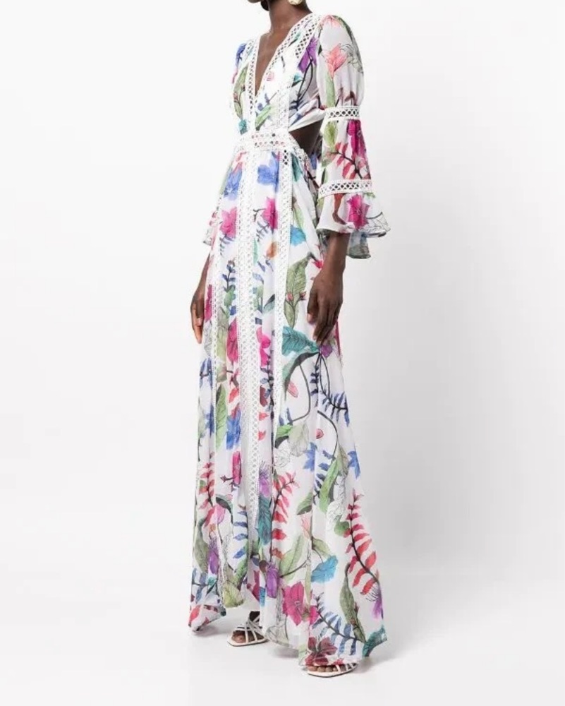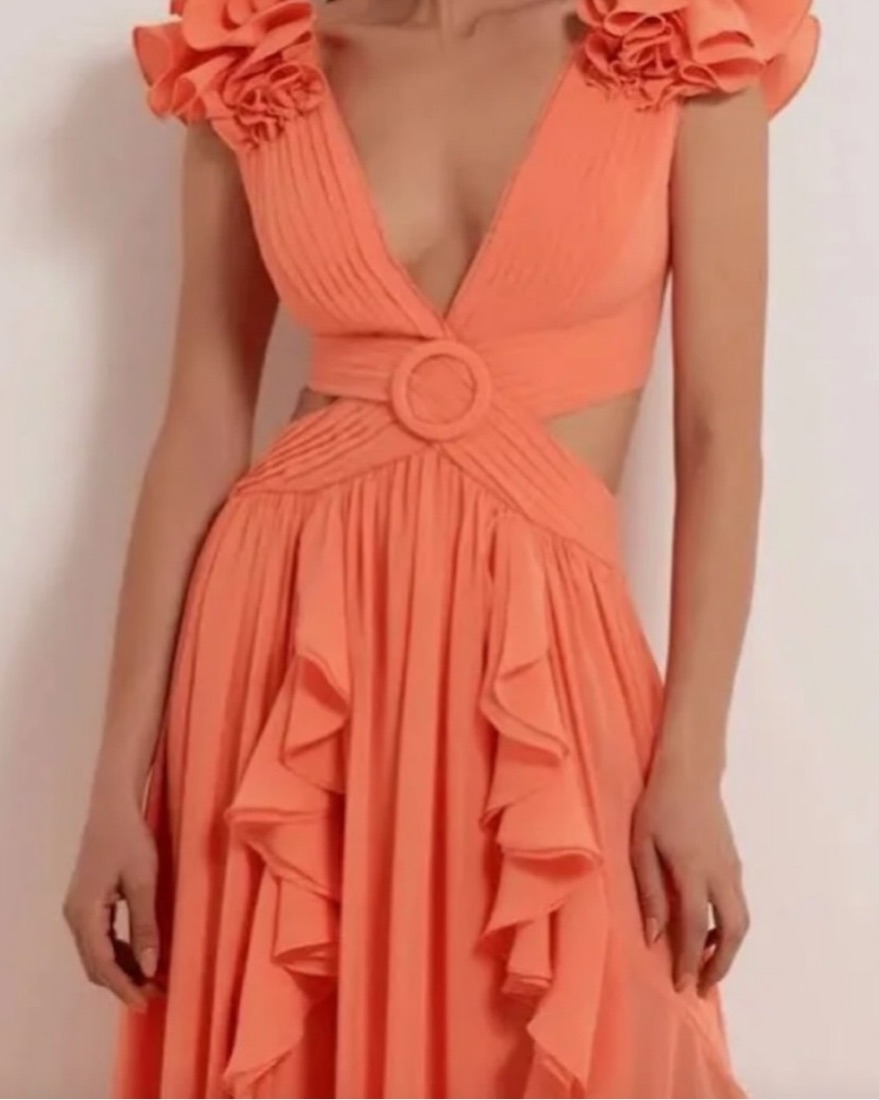 PatBO Metallic Cut-Out Fringe Maxi Dress