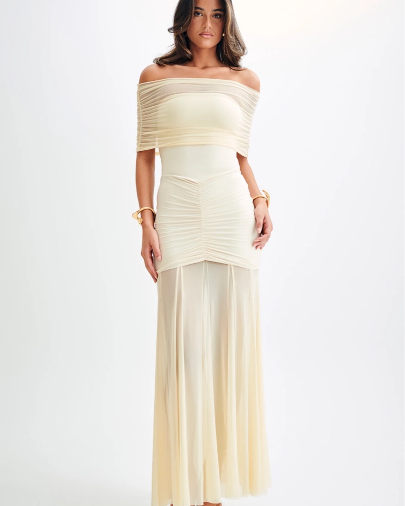 Caspian Slinky Mesh Off Shoulder Dress