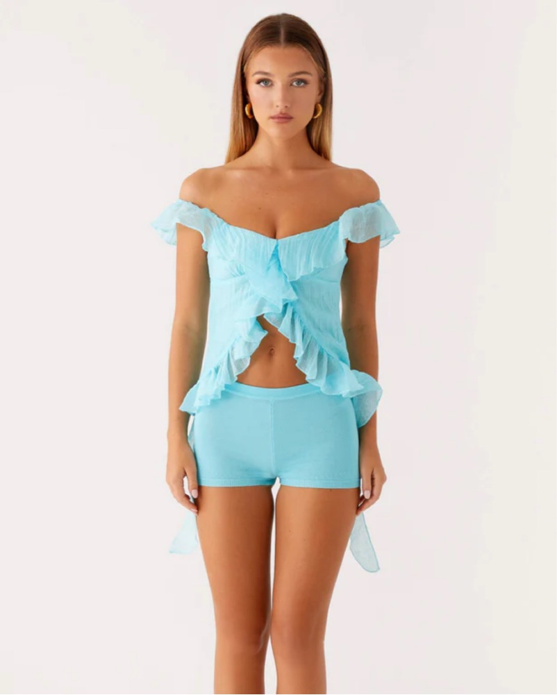 Chic Off-Shoulder Ruffled Top and Shorts Set