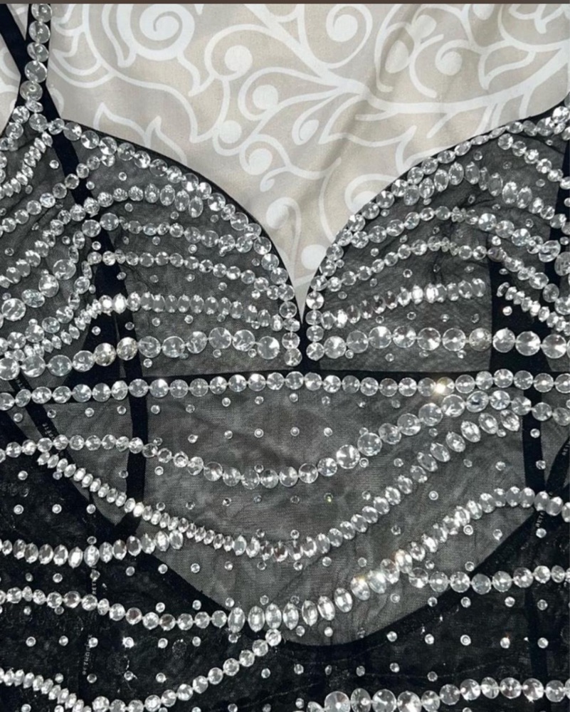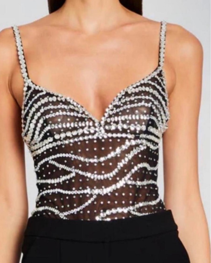 Retrofete Black Crystal Bodysuit S