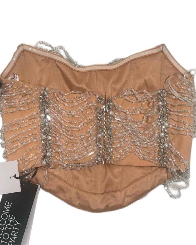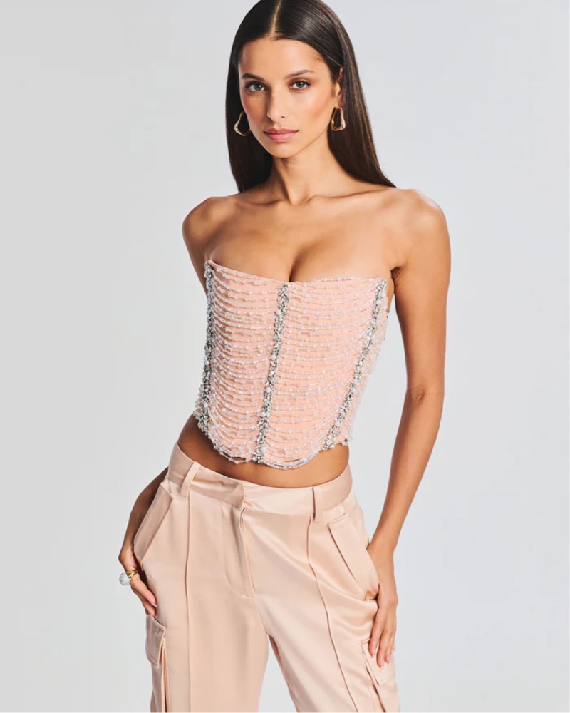 Retrofete Beaded Libby Tube Top in Peach