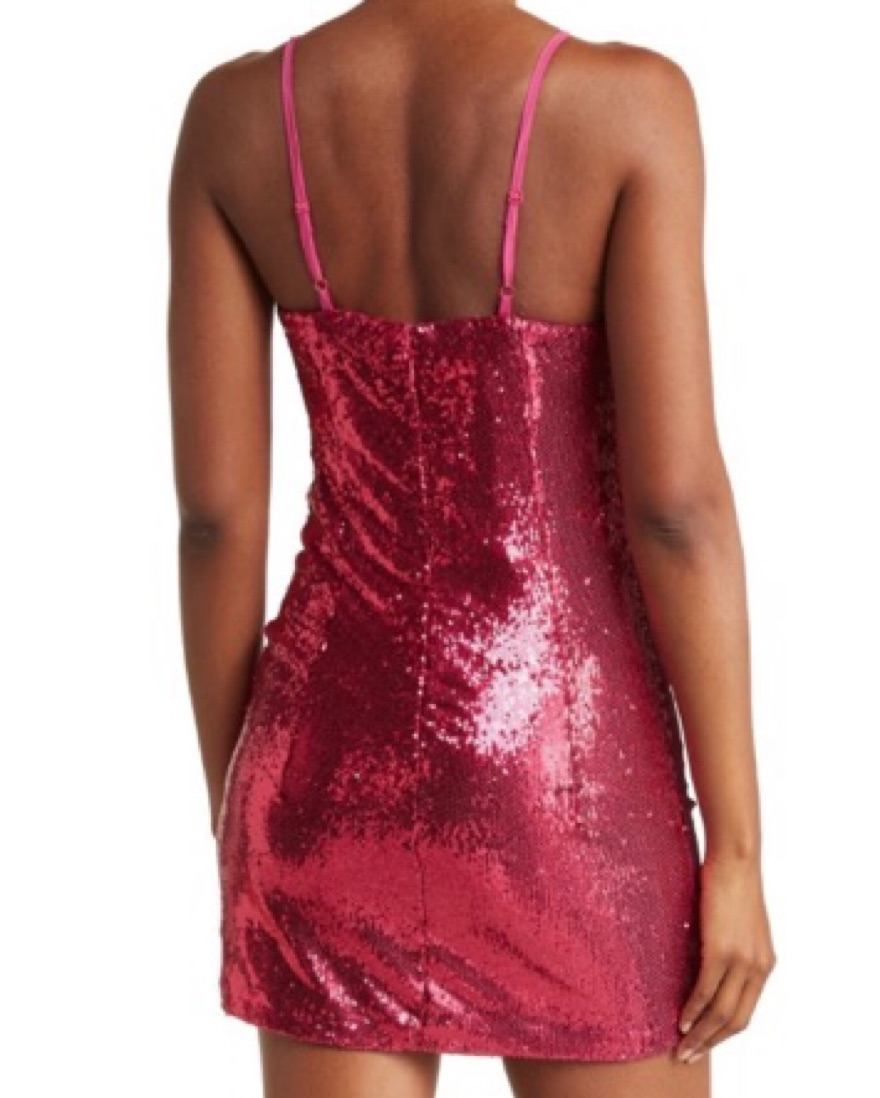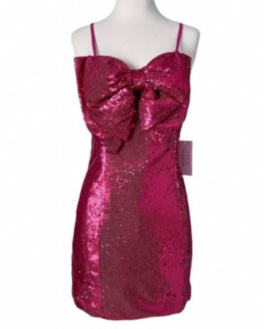 Ronny Kobo Hot Pink Sequin Bow Dress