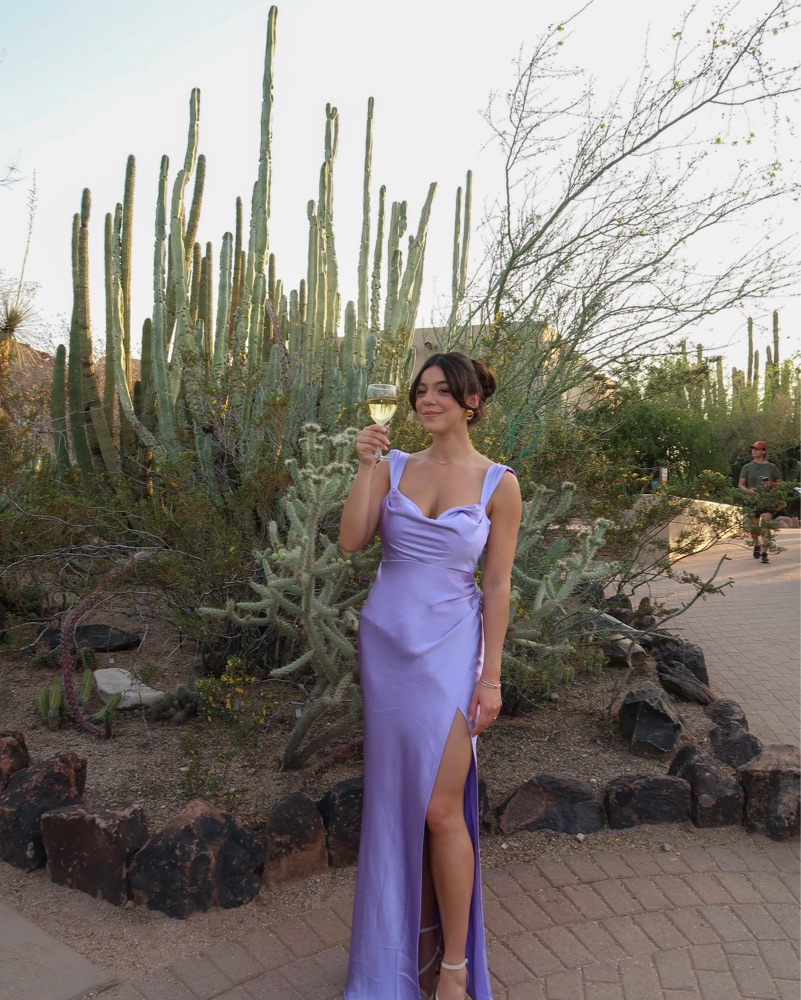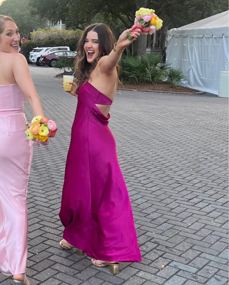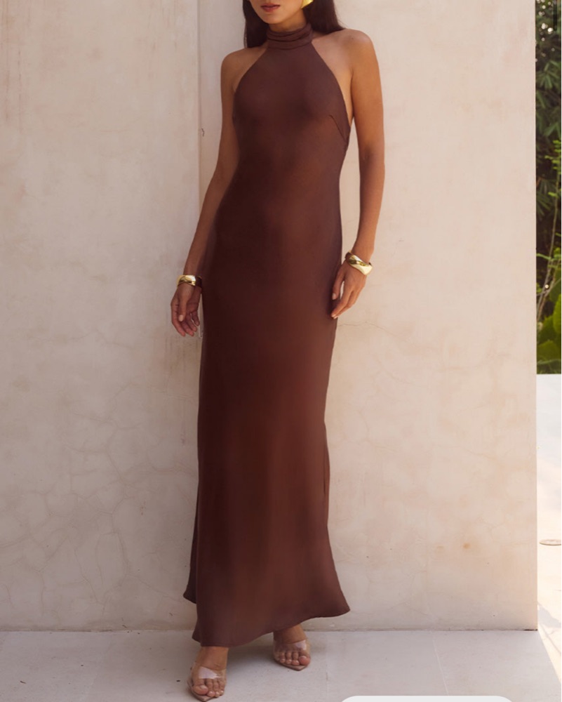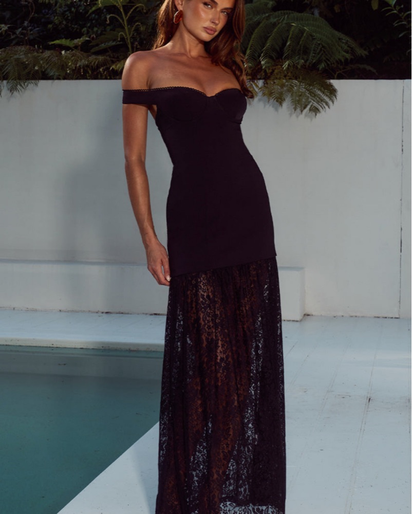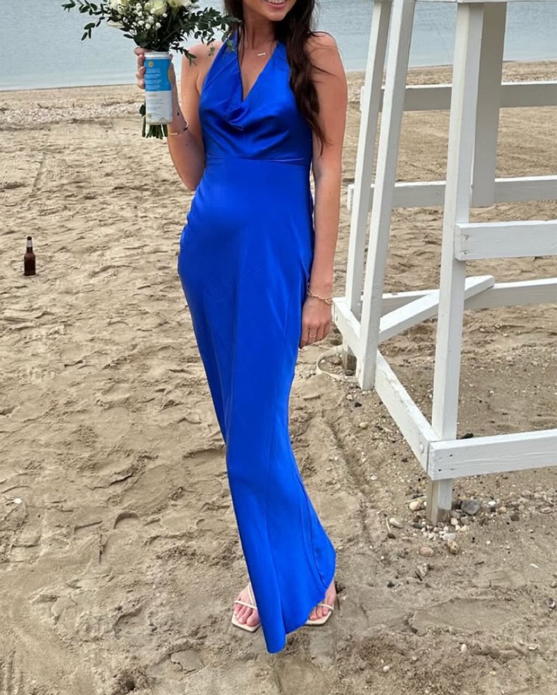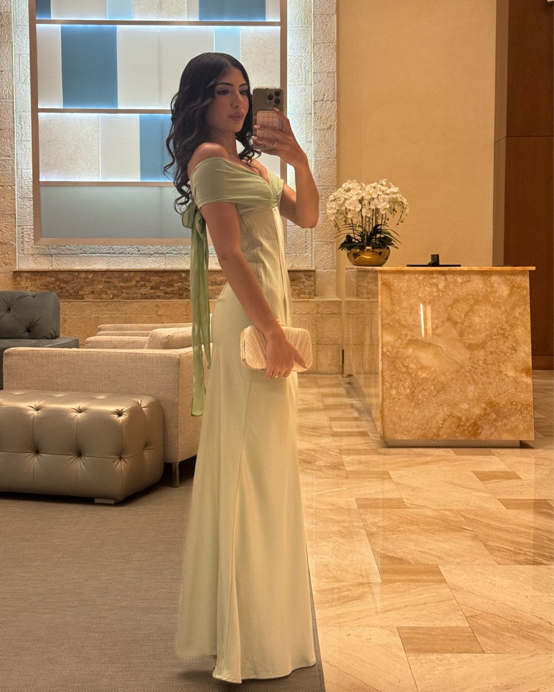 Elegant Off-the-Shoulder Satin Maxi Dress
