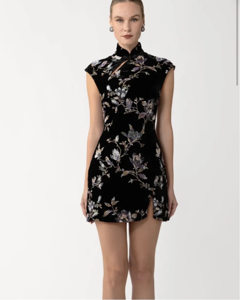 Sau Lee Black Velvet Mini Dress