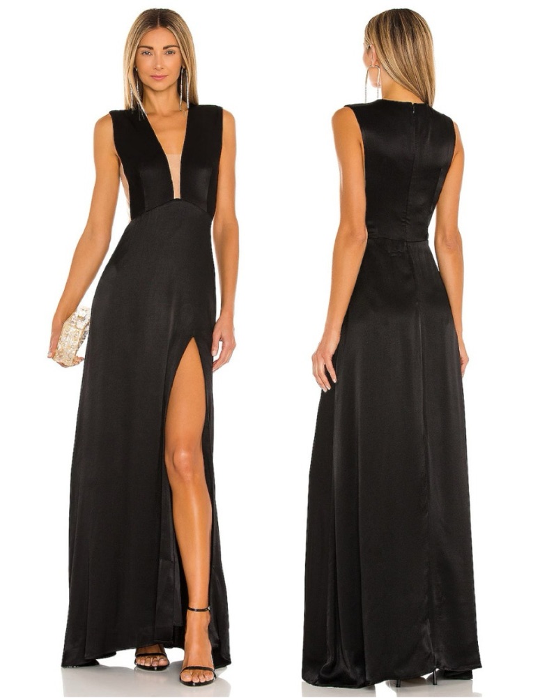 Sau Lee Black Gown Satin Wedding Guest