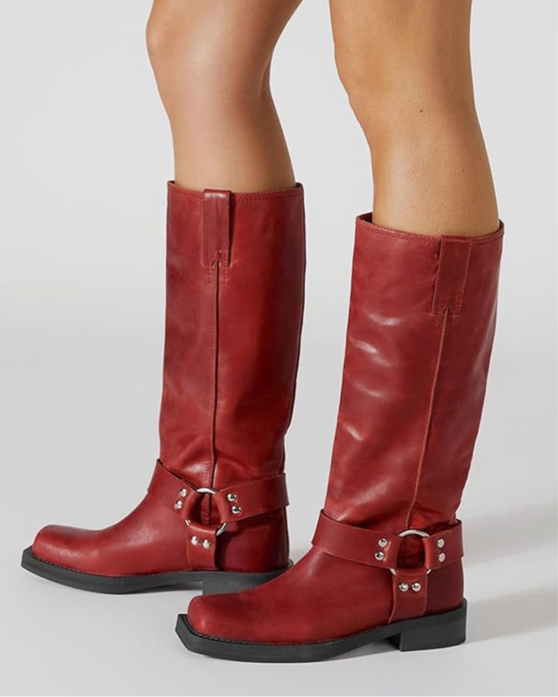 Red Boots w Silver Buckle & Studs