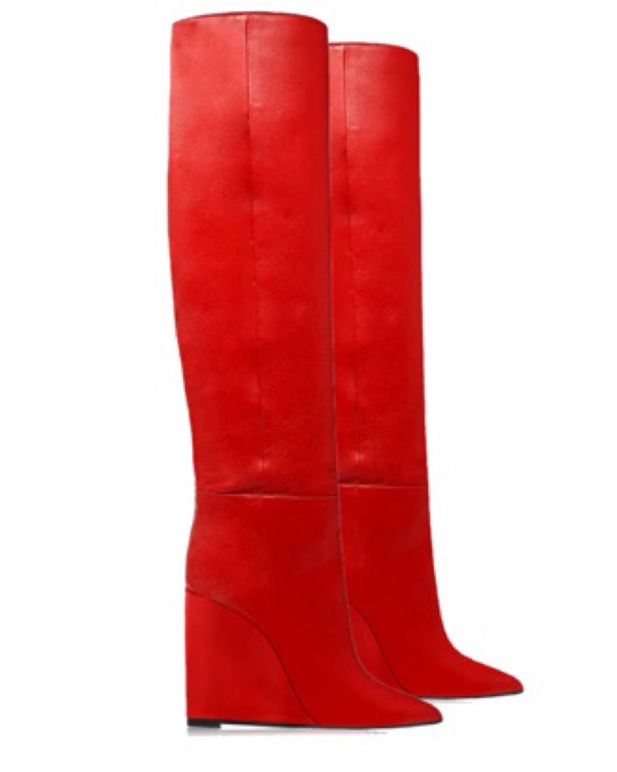 Red Identita Knee High Wedge Boots