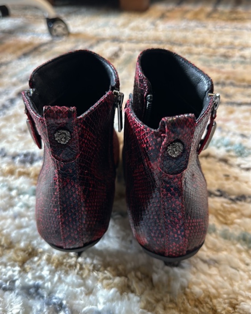 Red Boots w Silver Buckle & Studs