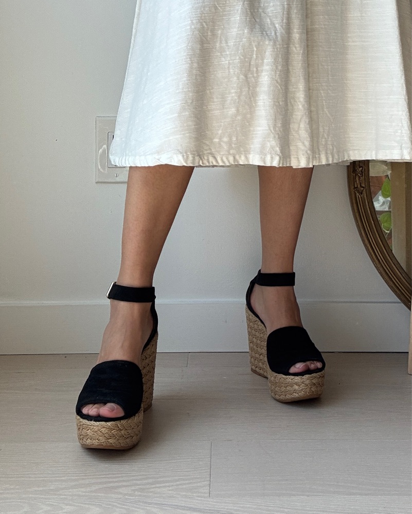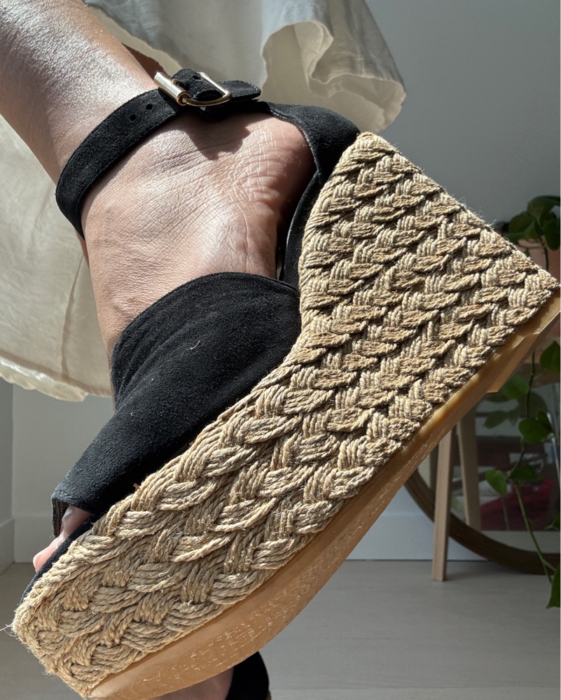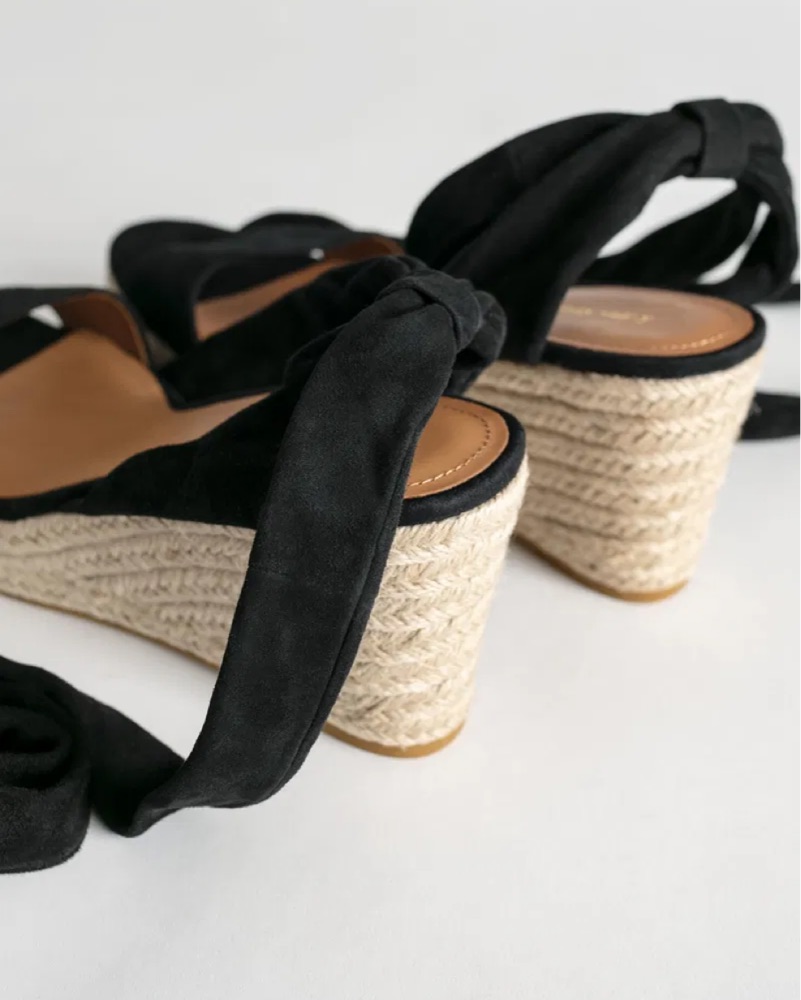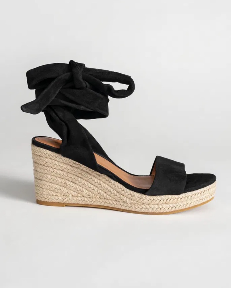 Black Strappy Espadrille Wedge Sandals