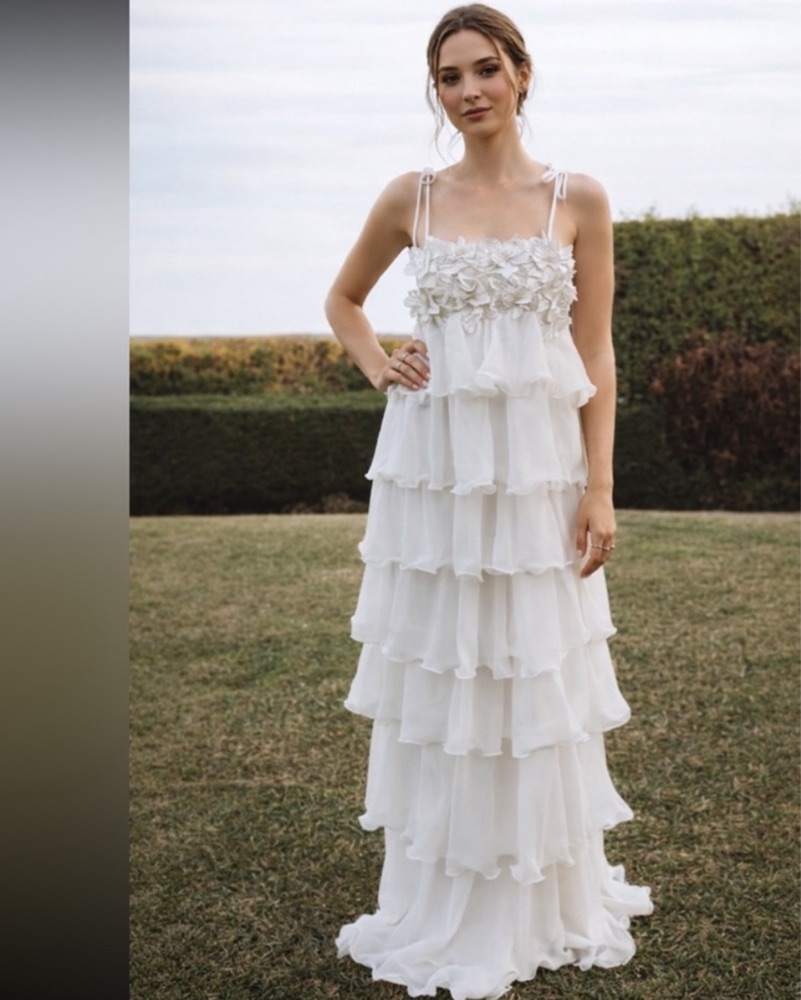 White ShowMeYourMumu Ruffle Maxi Dress