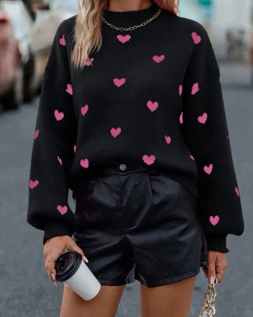 Black Sweater With Mini Pink Hearts