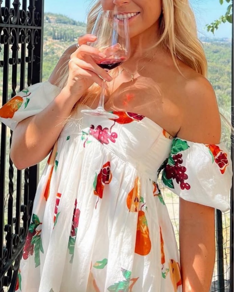 Puff Sleeve Babydoll Fruit Print Dress