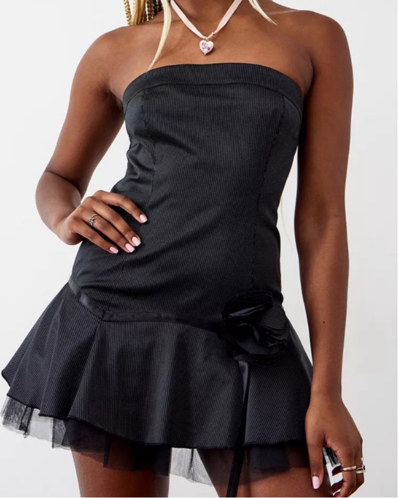 strapless pinstripe mini dress