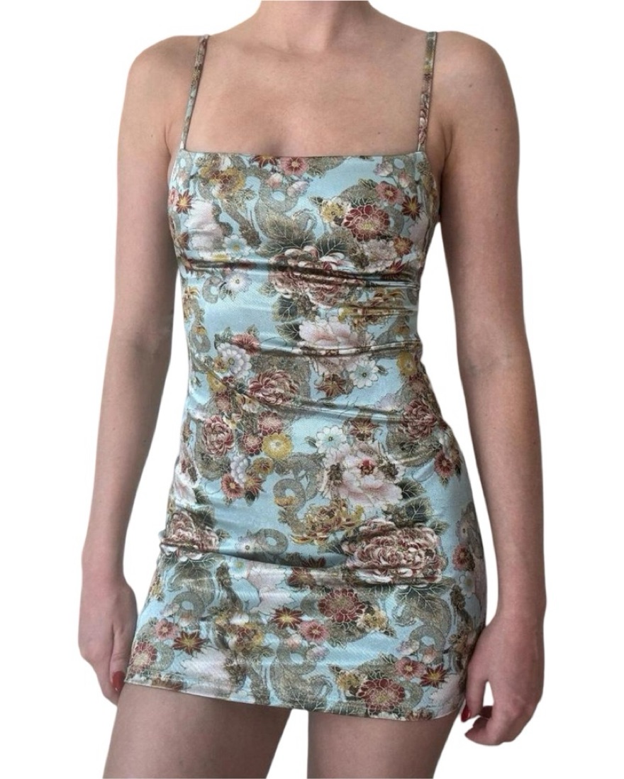 UO Dragon Sateen Floral Mini Slip Dress