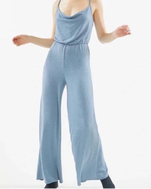 Blue Sparkle Halter Wide Leg Jumpsuit