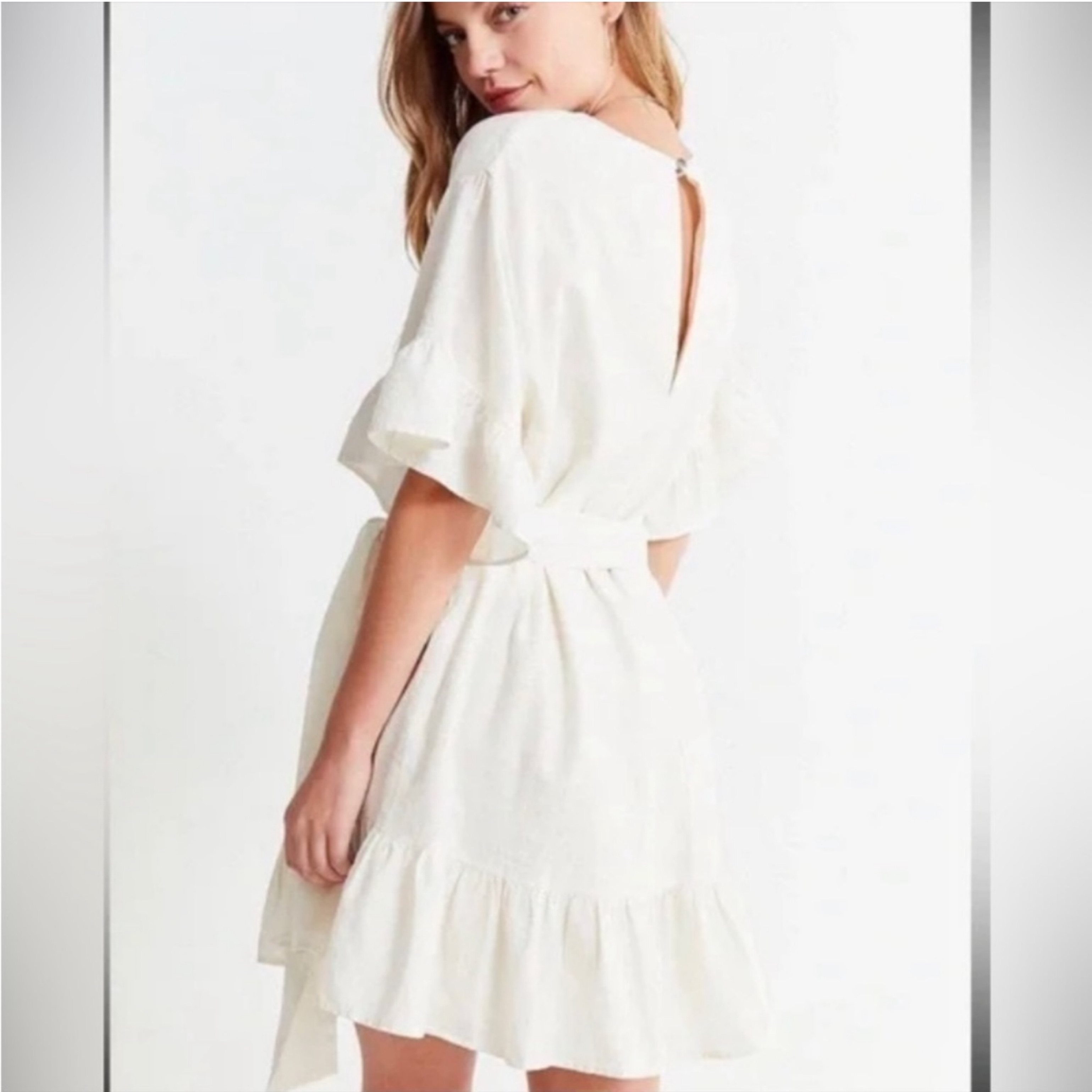 Urban Outfitters Crème Mini Ruffle Dress