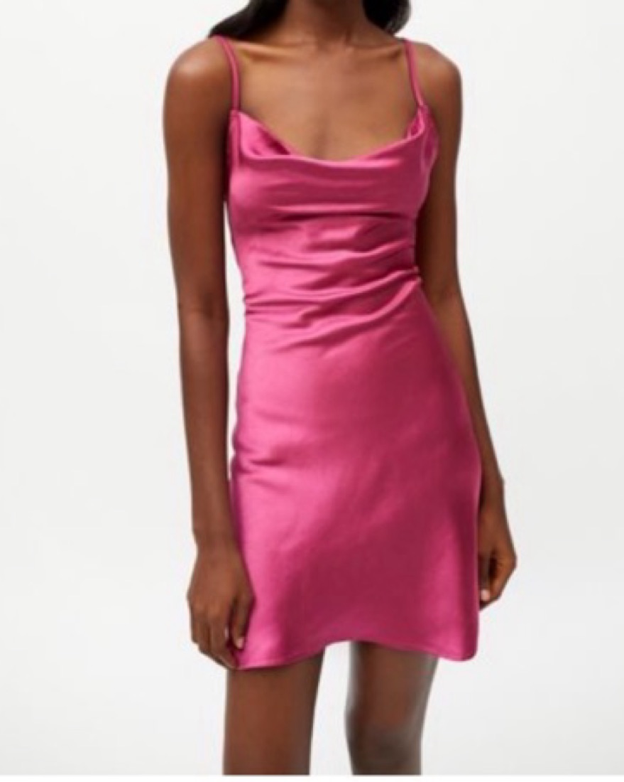 Pink Satin Ruched Mini Dress