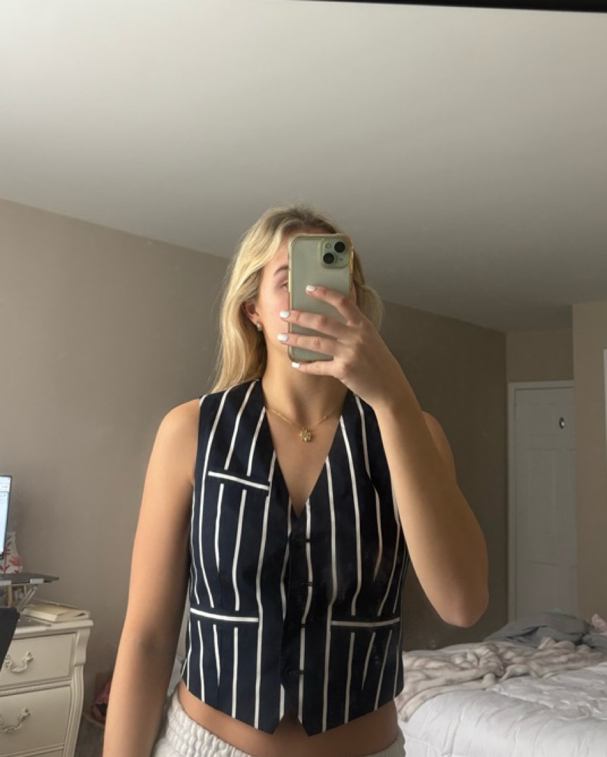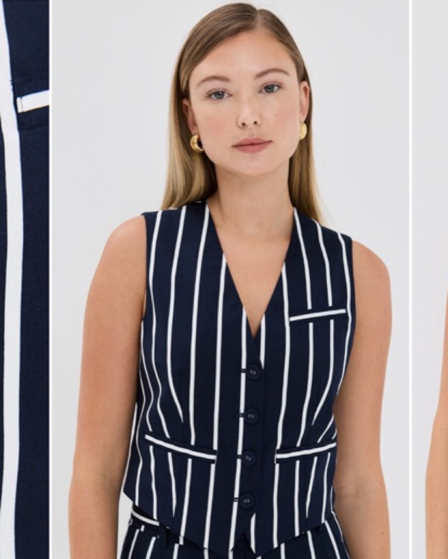 Veronica Beard Bennett Vest Navy Stripe