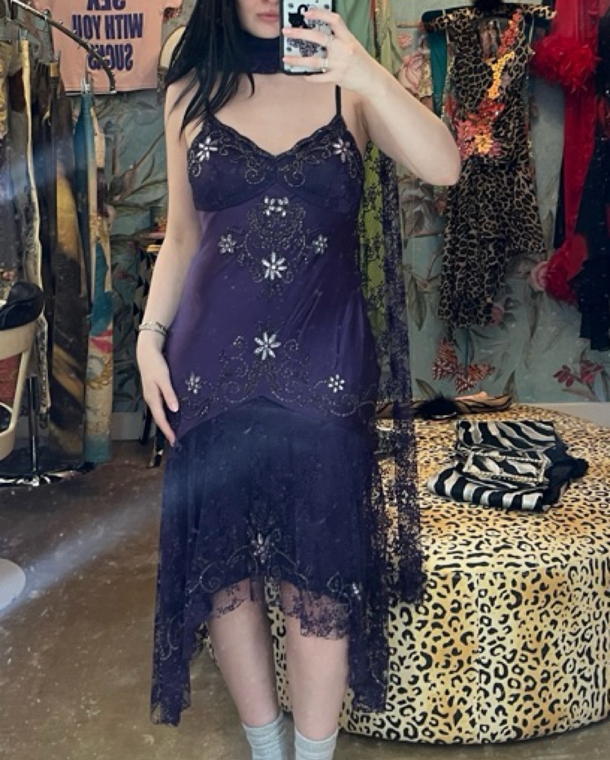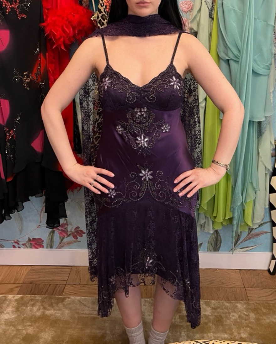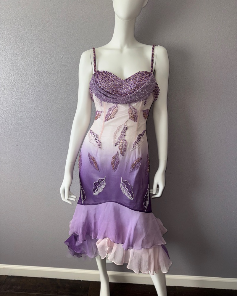 Vintage Silk Purple Beaded Midi Dress