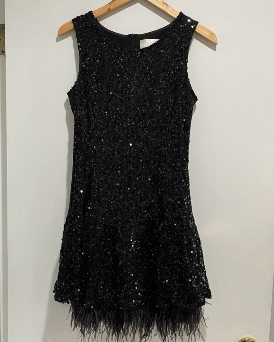 Vintage Sequin Feather Trim LBD
