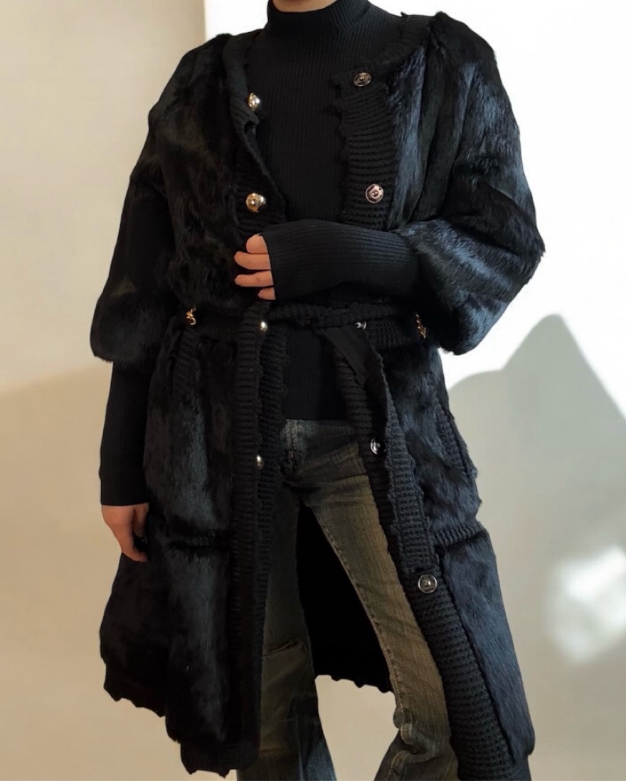Luxe Rabbit Fur Coat with waist tie and