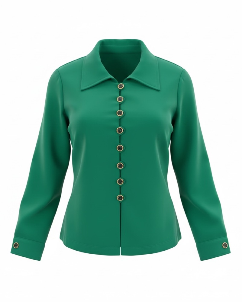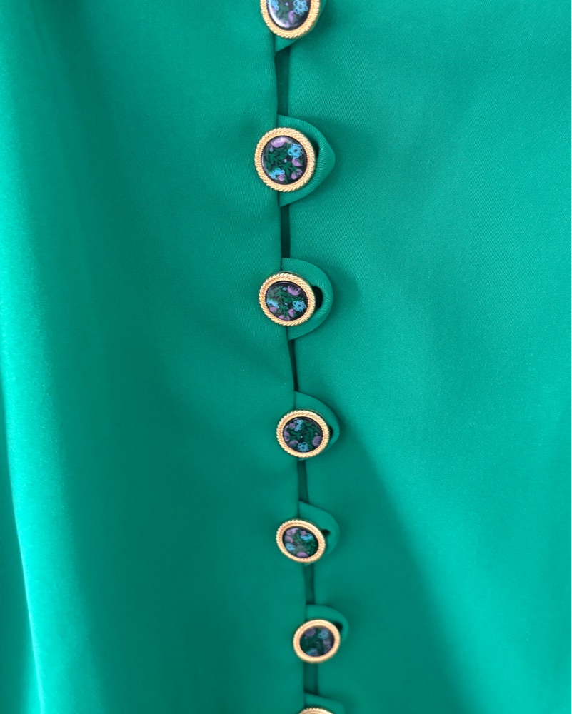 Vintage Emerald Green Button-Up Blouse