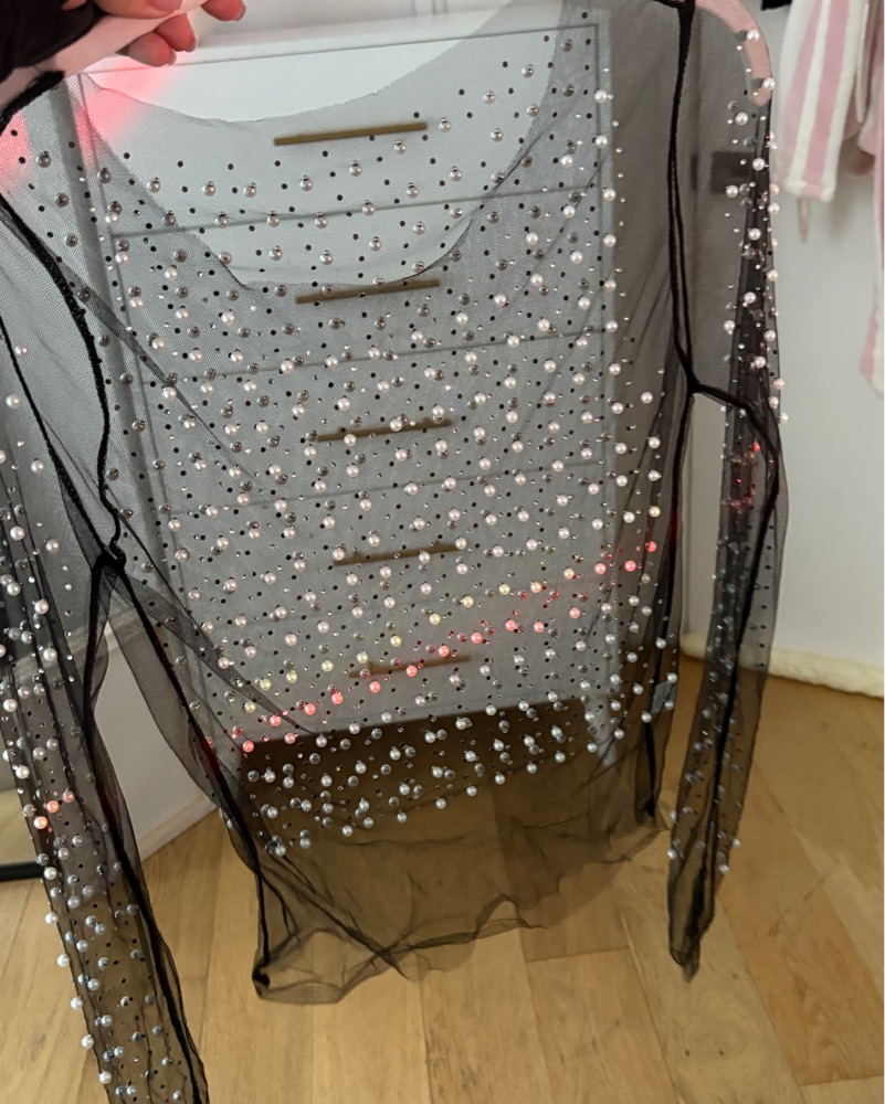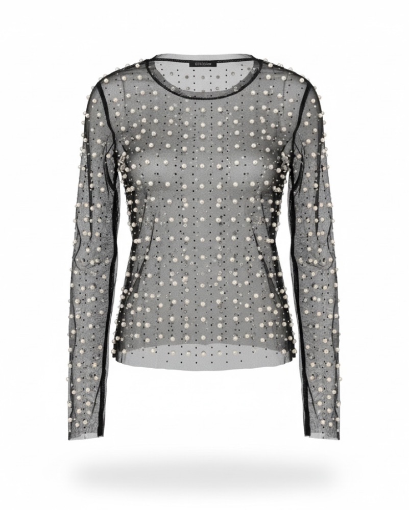 Sheer Pearl Long Sleeve Statement Top