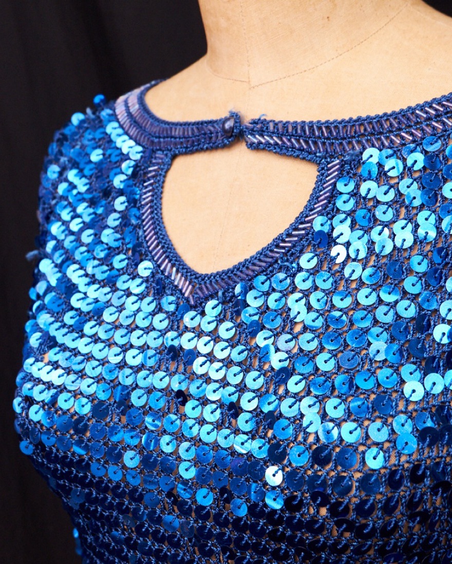 1970s Sequin And Fringe Open Knit Top