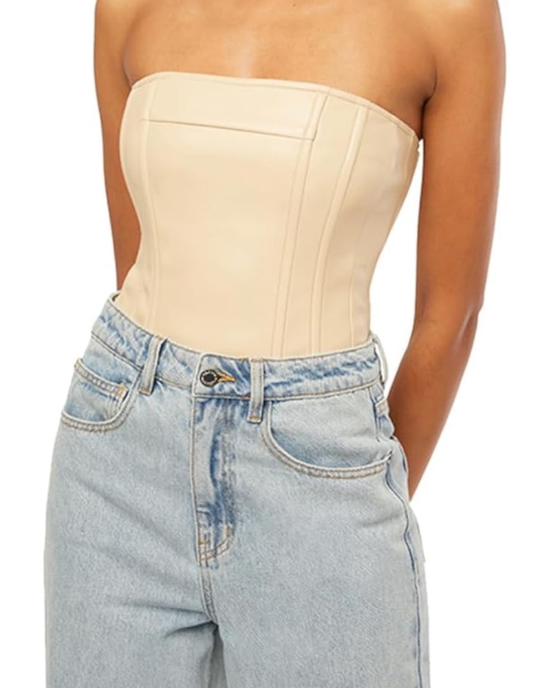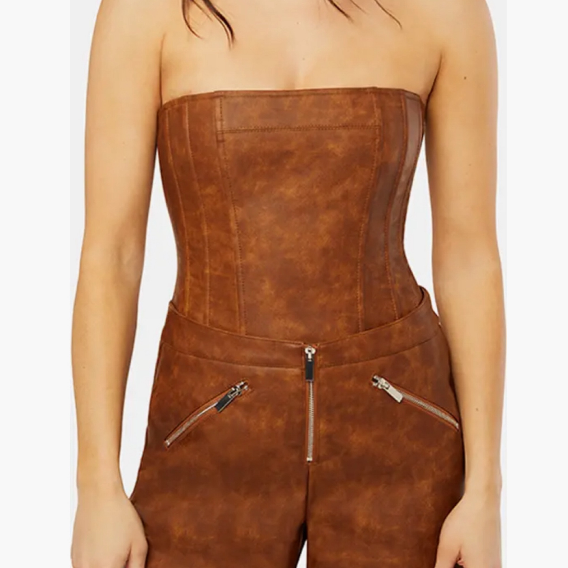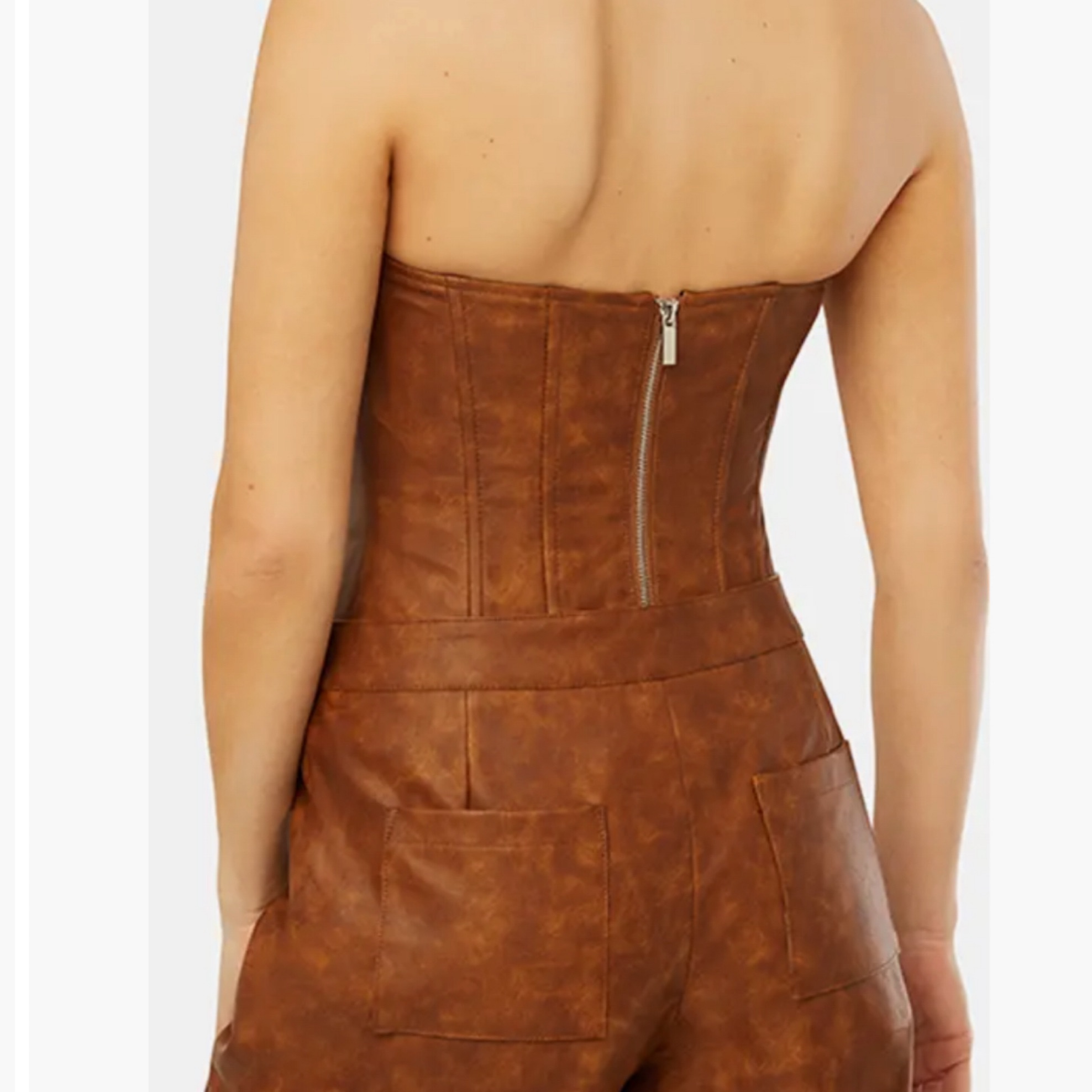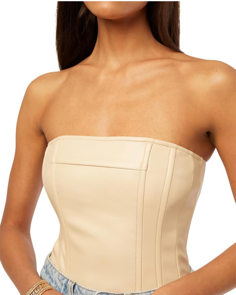 We Wore What Leather Strapless Top