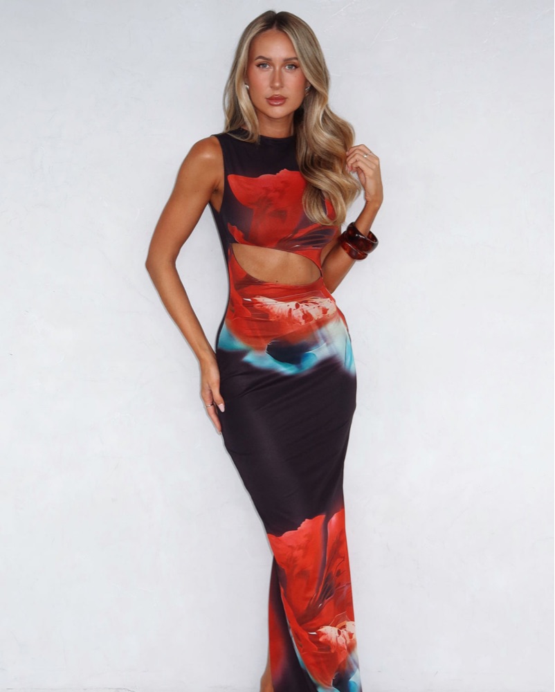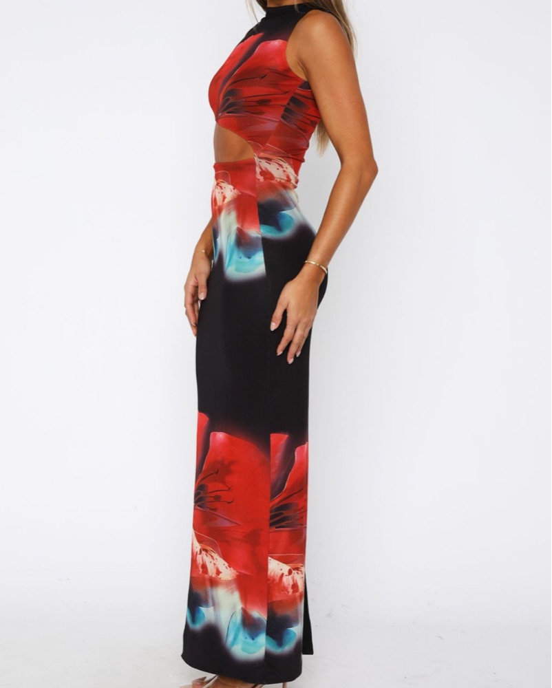 Vibrant Floral Cutout Maxi Dress
