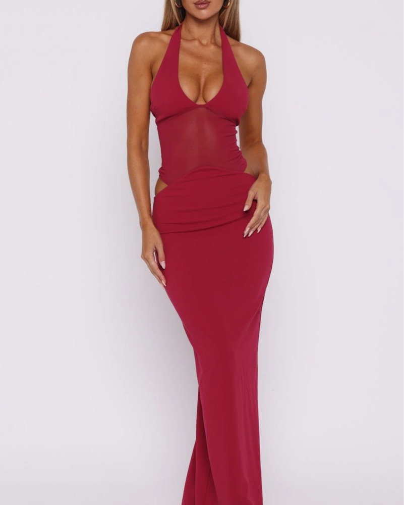 White Fox Red Sequin Halter Dress