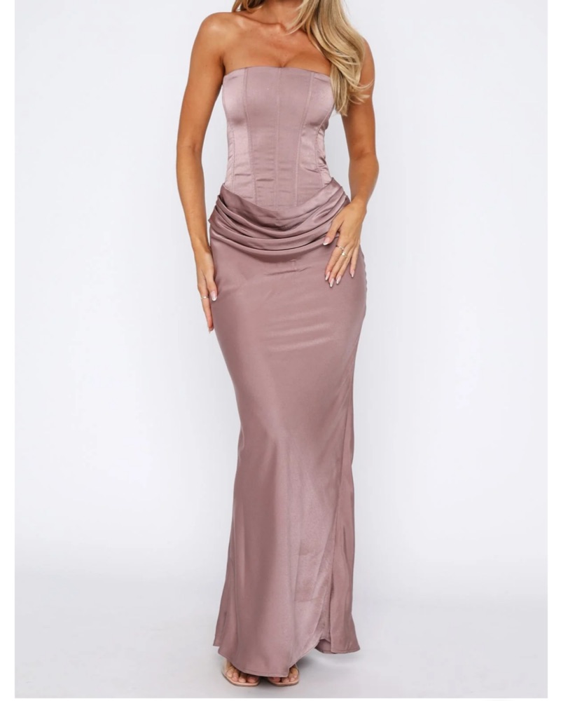 White Fox Mocha Corset Maxi Dress