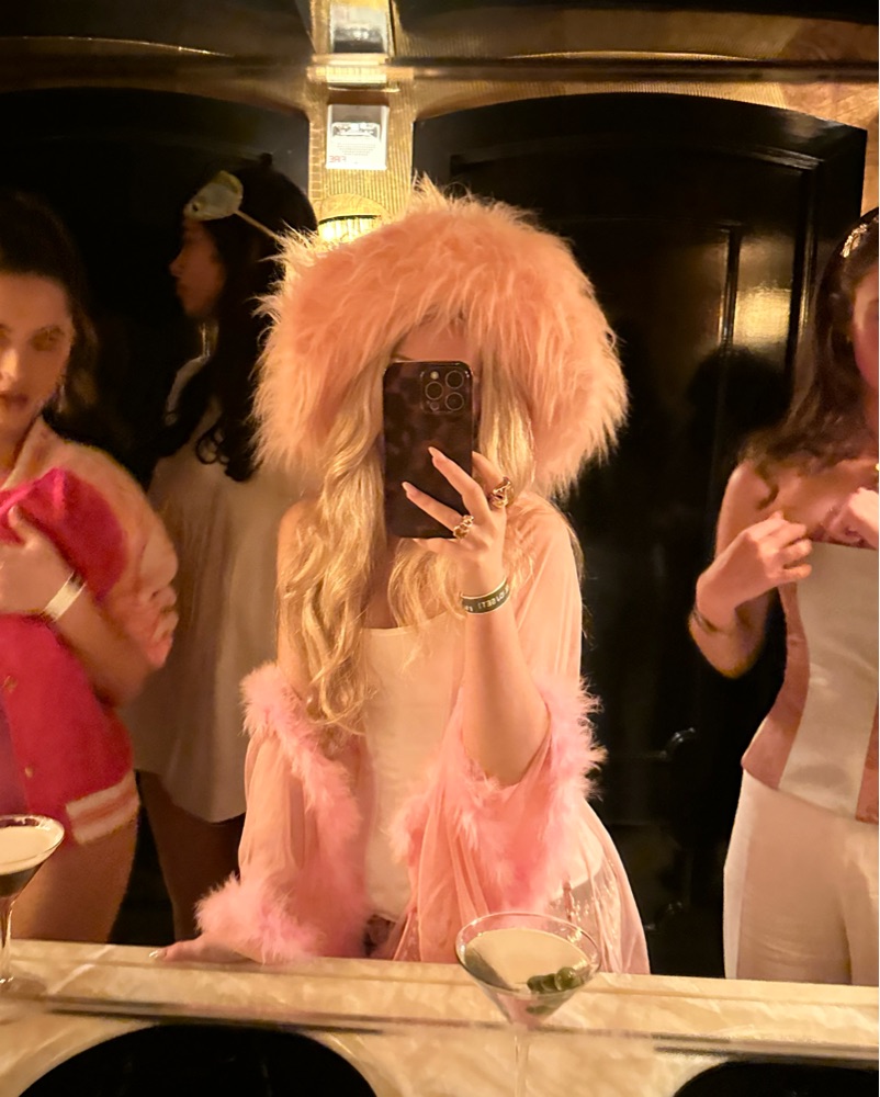 Pamela Anderson Big Pink Fuzzy Hat