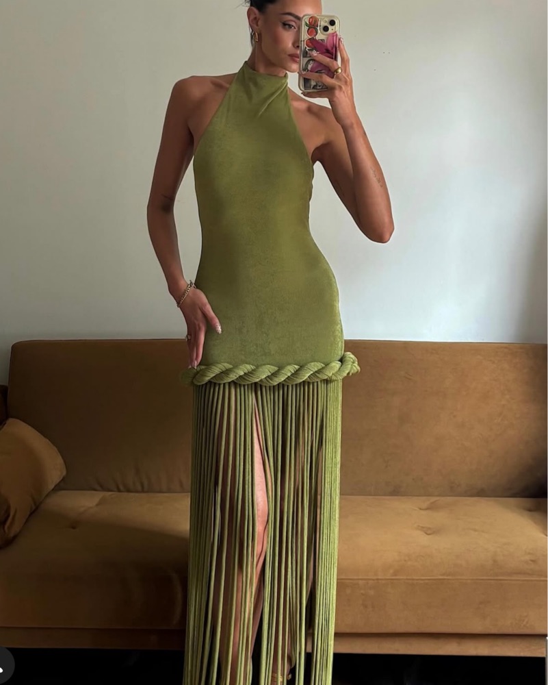 Green Fringe Wedding Guest Dress