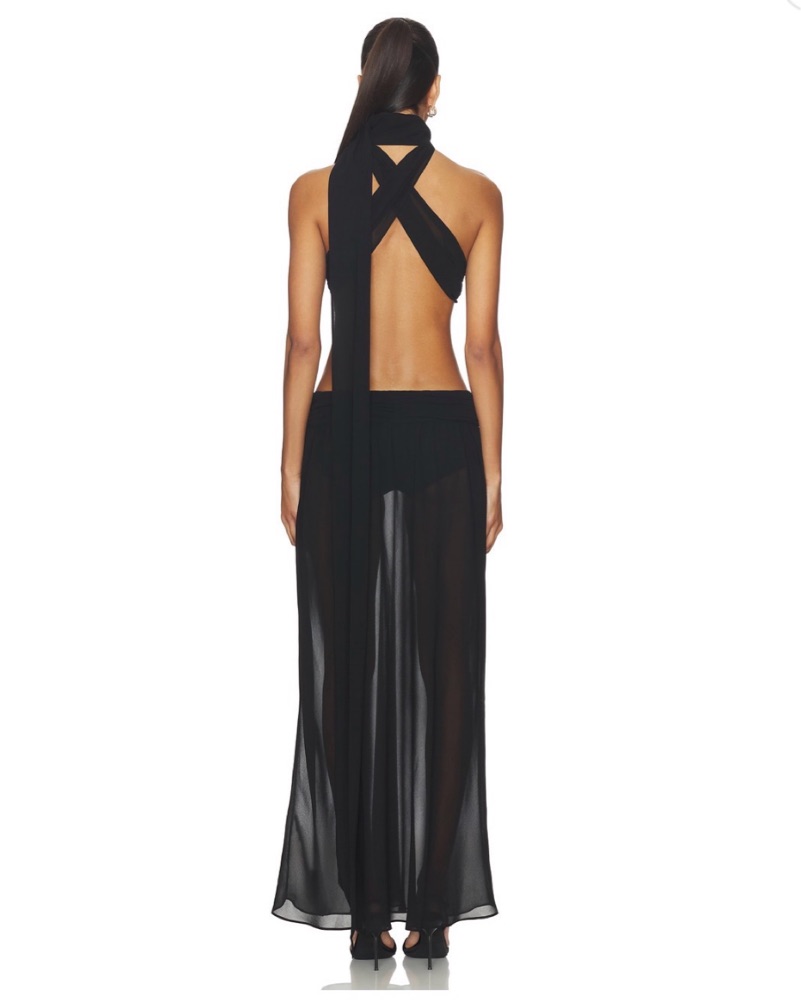 Guizio Low Back Chiffon Maxi Dress