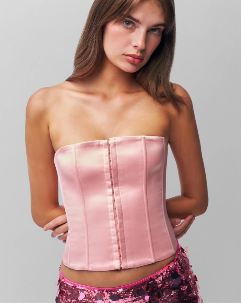Danielle Guizio Satin Corset Light Pink