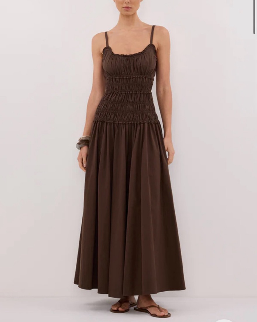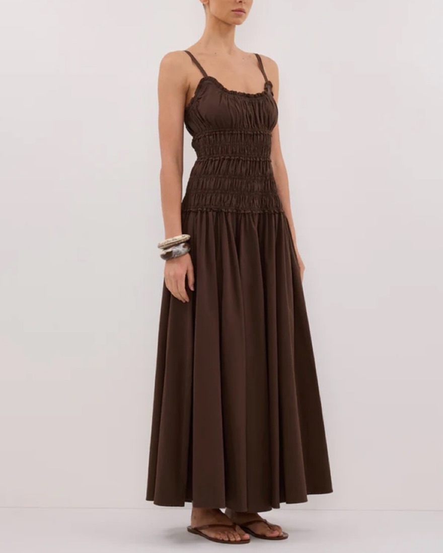 DISSH TOBY BITTER CHOC COTTON MIDI DRESS